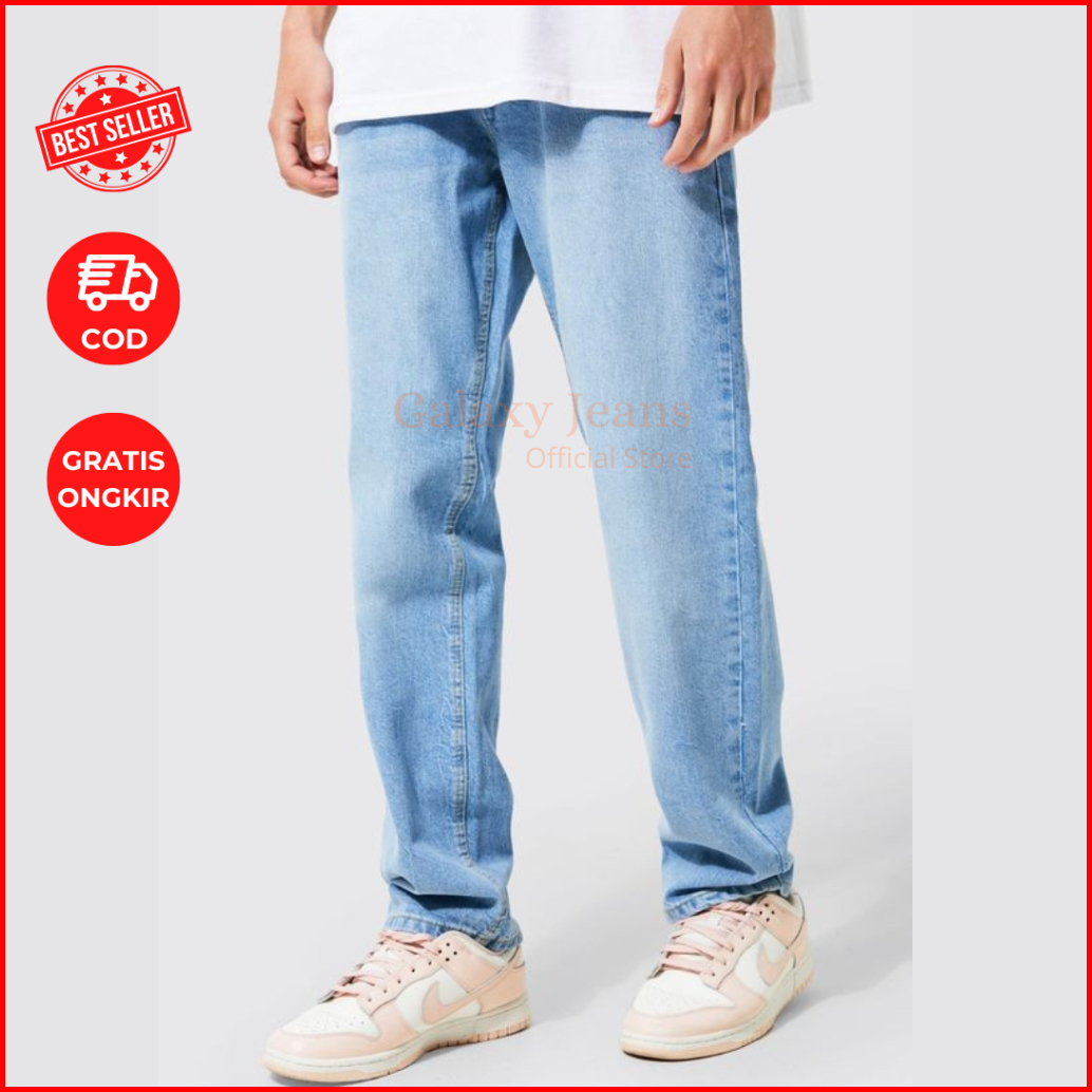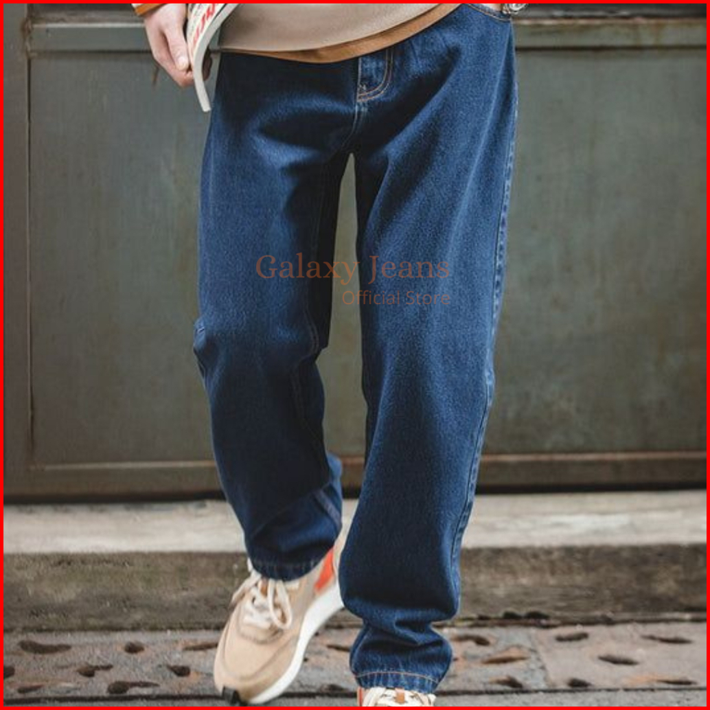 Celana Baggy Jeans Panjang Pria Standar Reguler Fit Promo Cuci Gudang Jin Pants Korean Style Oversize Straight Loose Blu