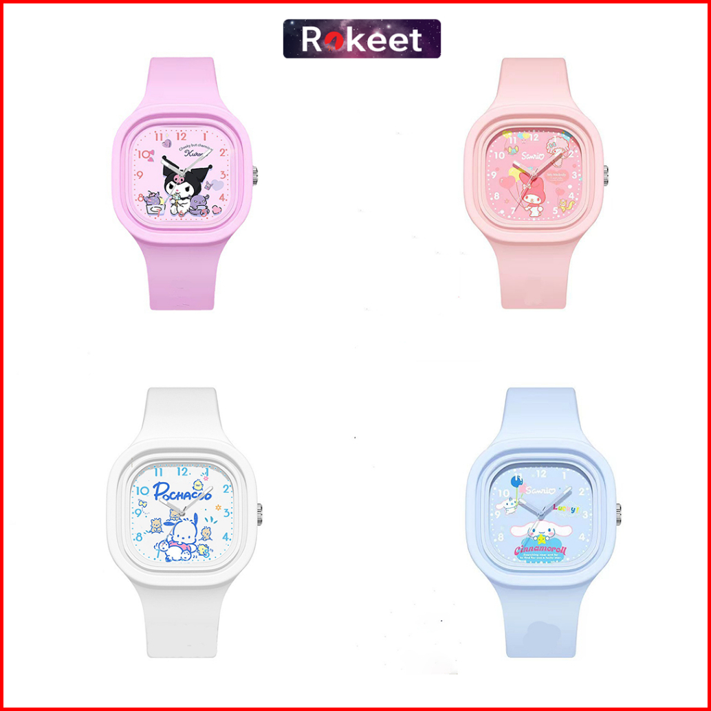 Rokeet Jam Tangan Rubber Analog Karakter Lucu Kuromi Cinnamoroll Sanrio Wanita Anak Perempuan