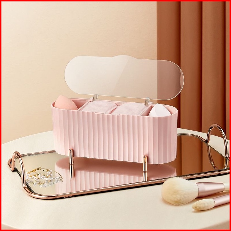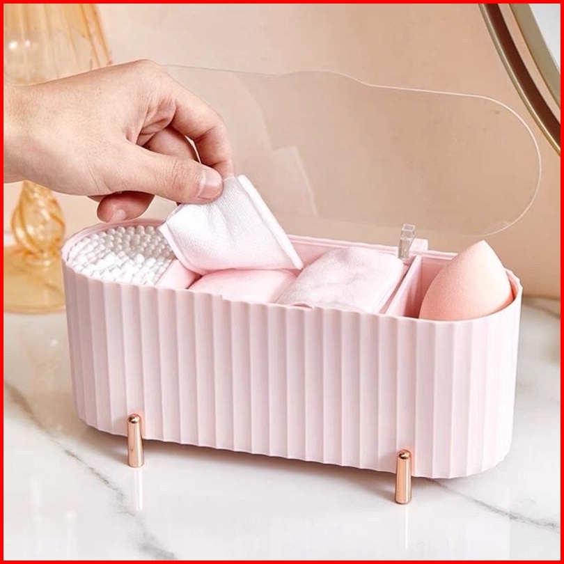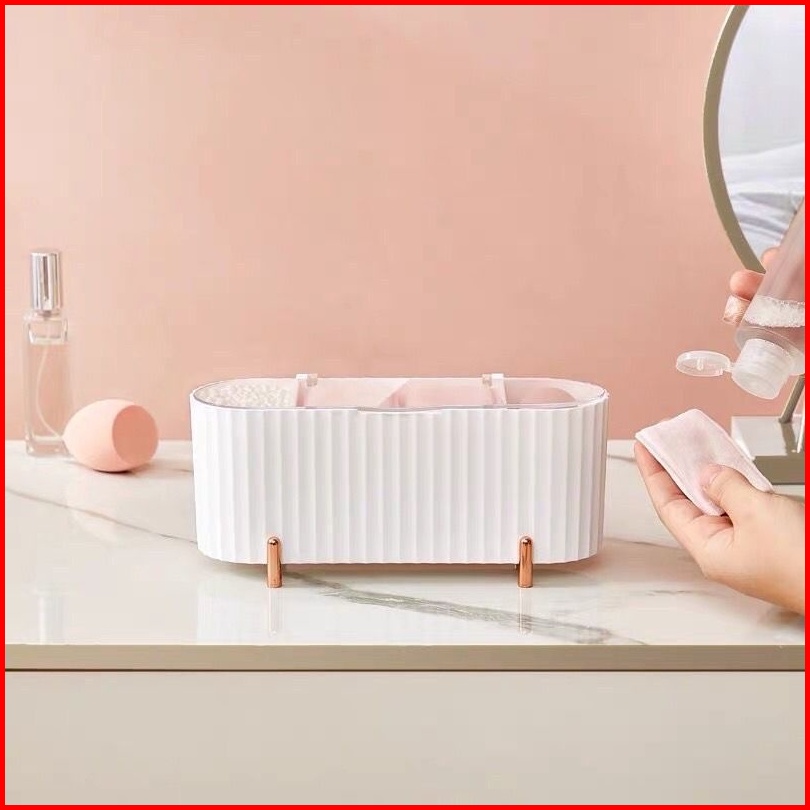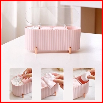 Alby Mart - Tempat Penyimpanan Kosmetik 3 Sekat Penyimpanan Cotton Bat Tempat Kapas Transparan
