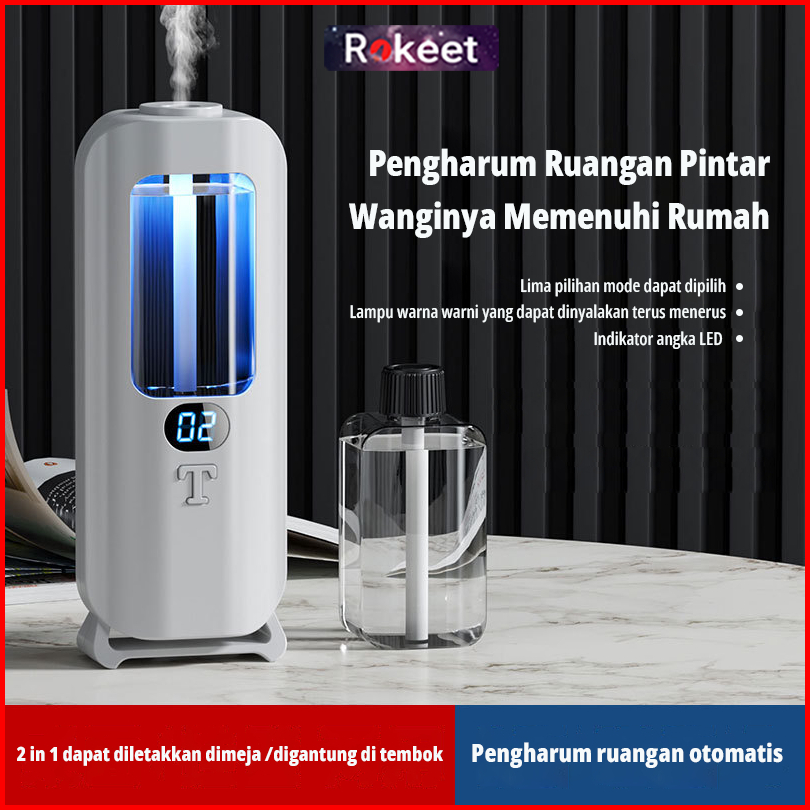 Rokeet Alat Pengharum Ruangan Led Otomatis Dinding 5 Mode 45 Ml Fragrance Dispenser Rechargeable