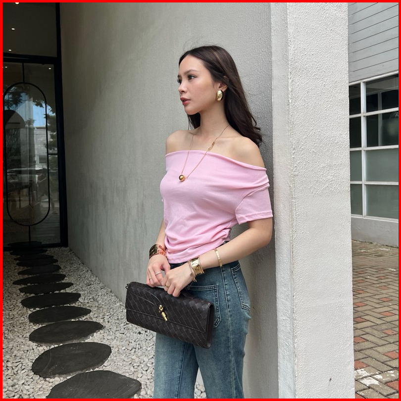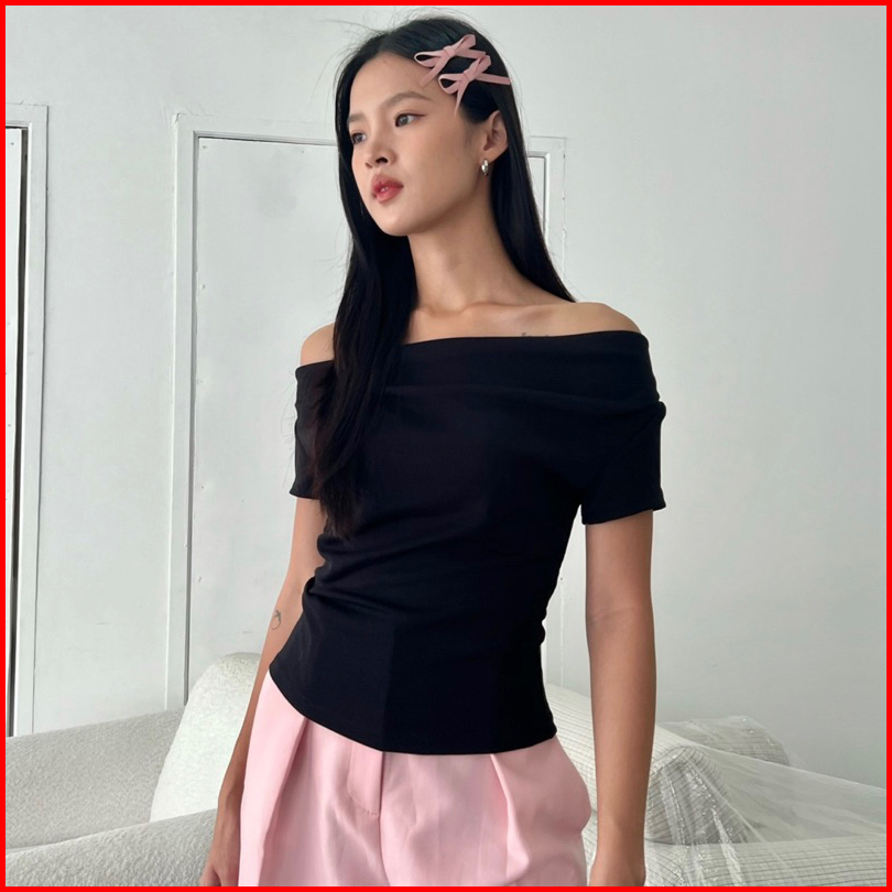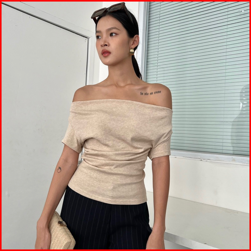 Pola Top Lale Atasan Knit Rib Wanita Top Baru Wanita Lengan Pendek Basic Short Sleeve Sabrina Summer Stretch Kaos Multiw
