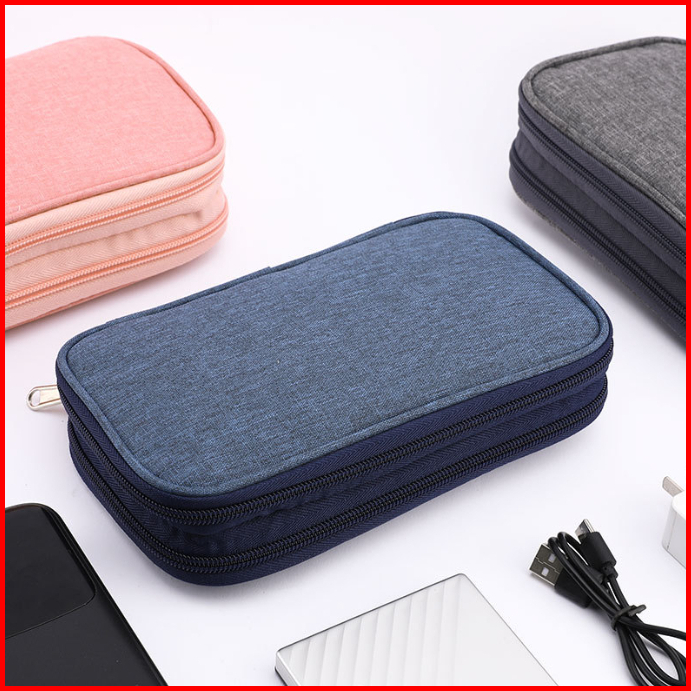 Osm Jkt D6178 Dompet Travel Double Layers Zipper Organizer Gadget Pouch Carry Case Portable Mini Storage Bag For Cable C