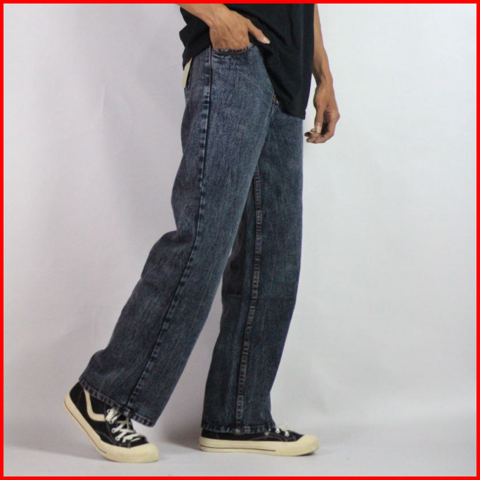 Celana Jeans Pria Model Loose Korean Style Gombrong Bahan Denim