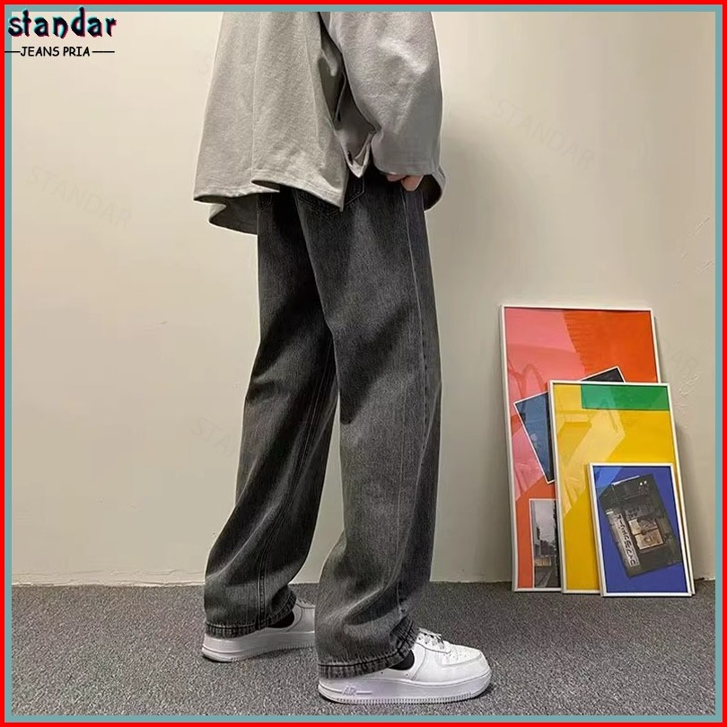 Celana Jeans Pria Panjang Celana Kulot Denim Pria Fashion Jeans Baggy Jeans Pria Jumbo