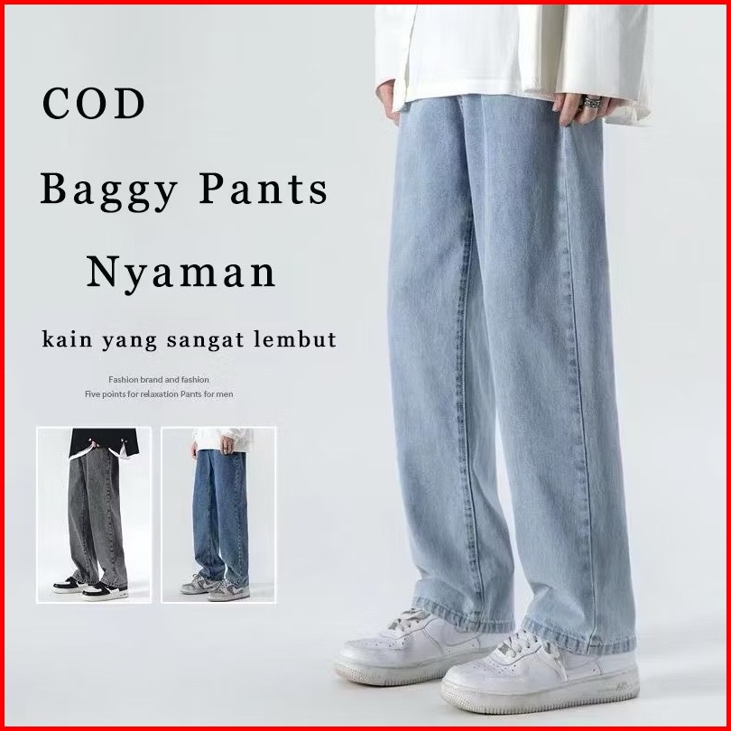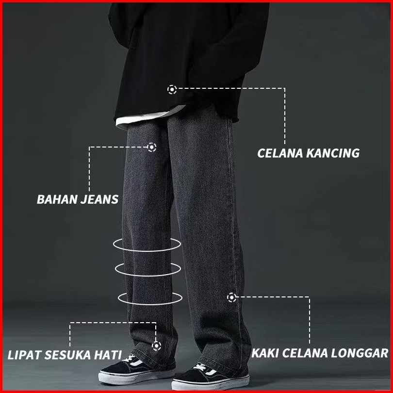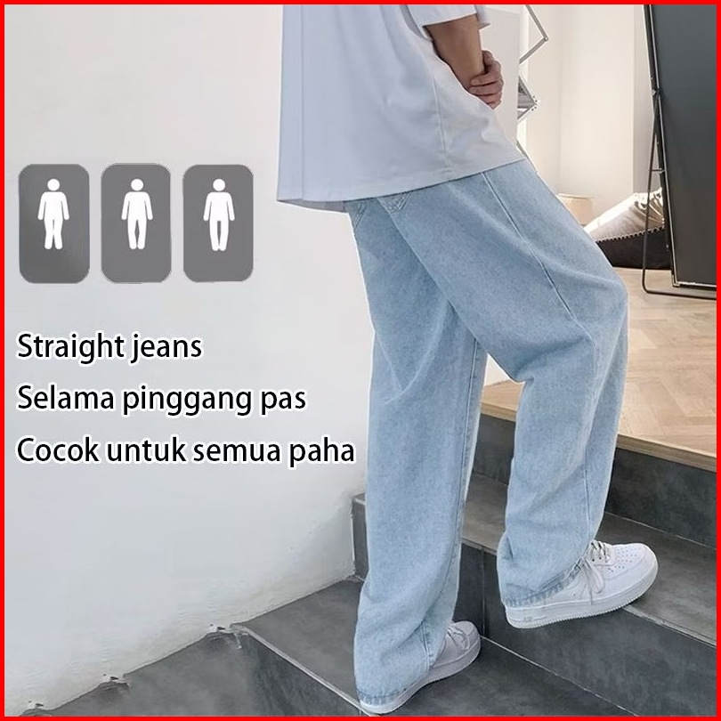 Haka - Celana Panjang Jeans Pria Blue Jeans Korean Style Original Loose Straight