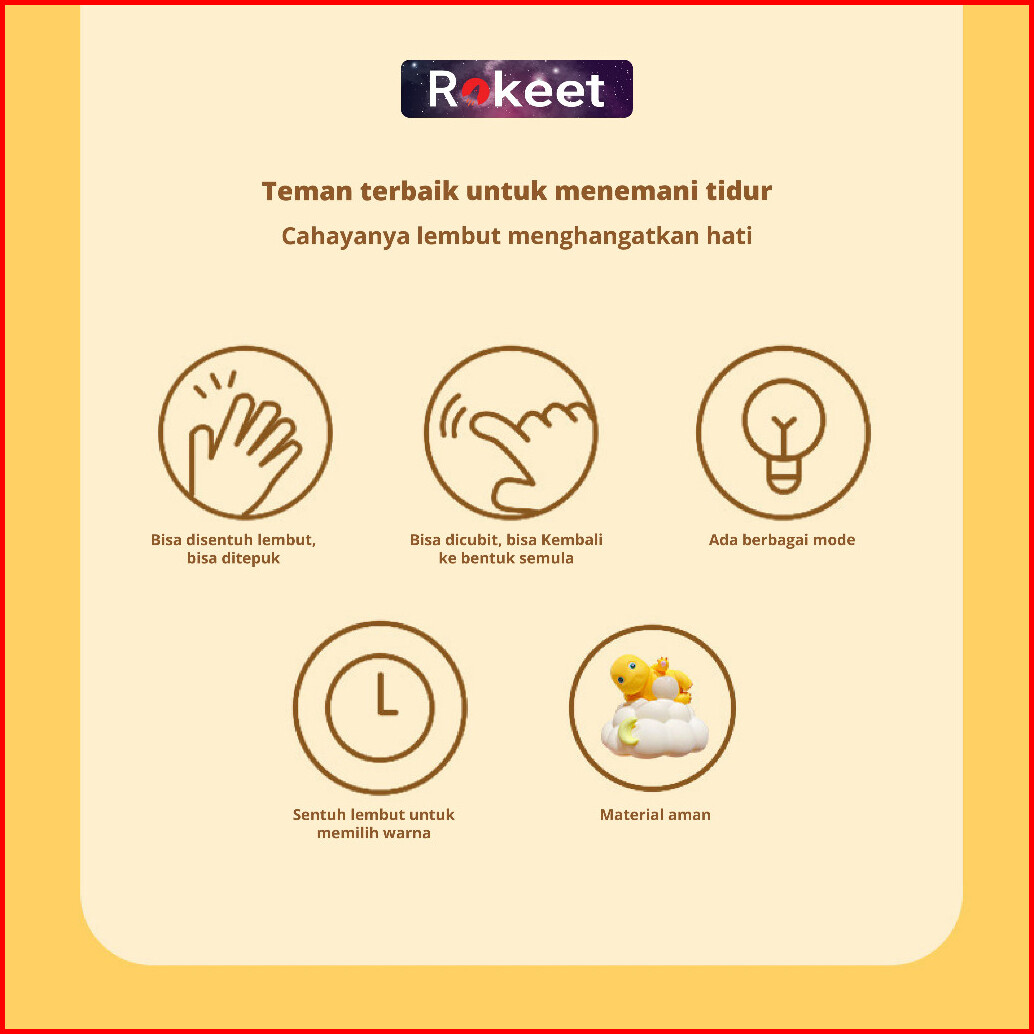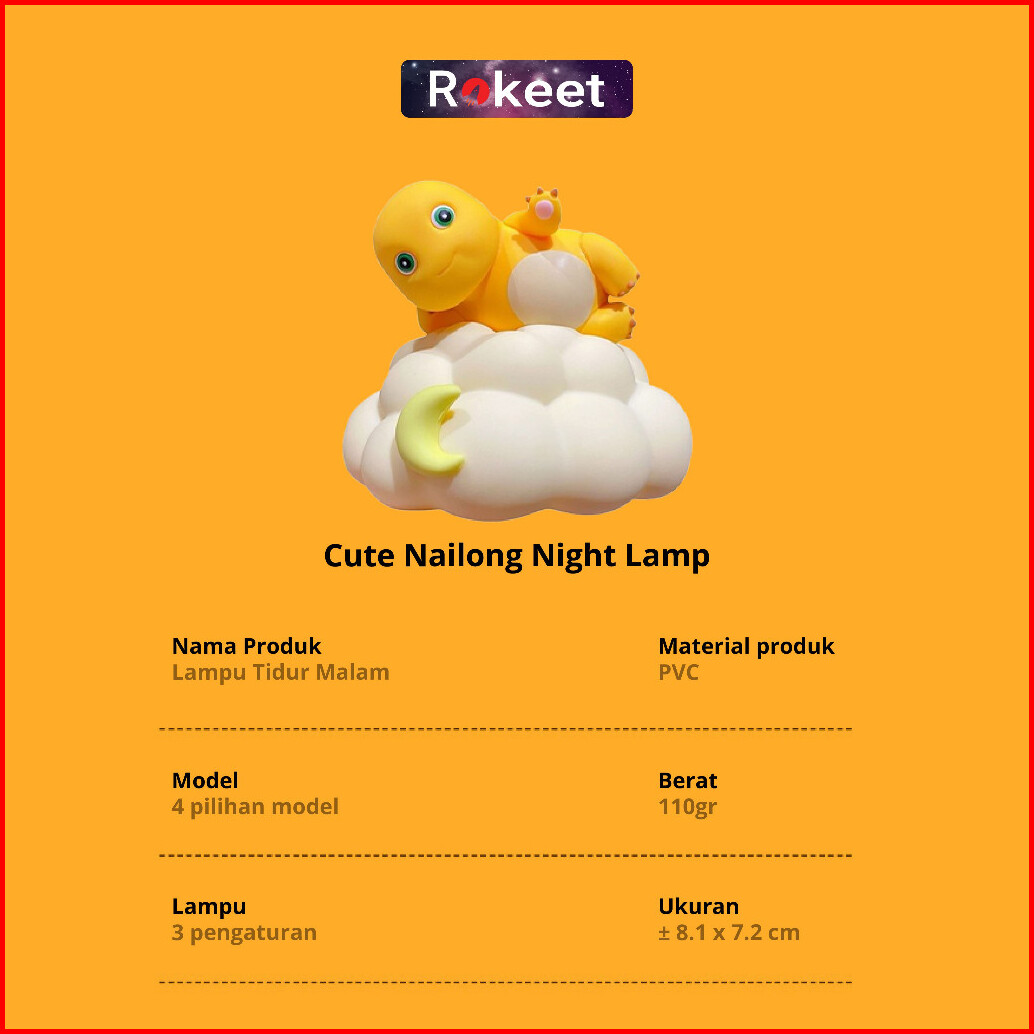 Rokeet Night Lamp Led Nailong Dino Kuning Cute Lampu Tidur Malam Dekorasi Kamar Hias