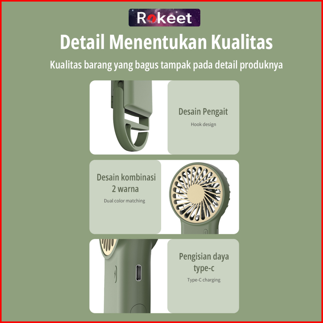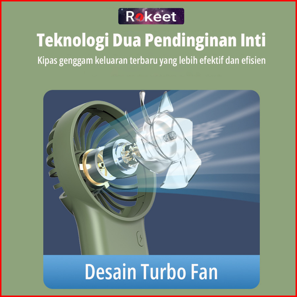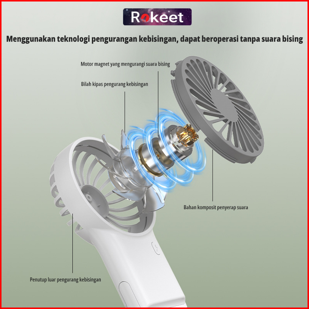 Rokeet Kipas Angin Travel Mini Fan Exquisite Portable Handheld Rechargeable