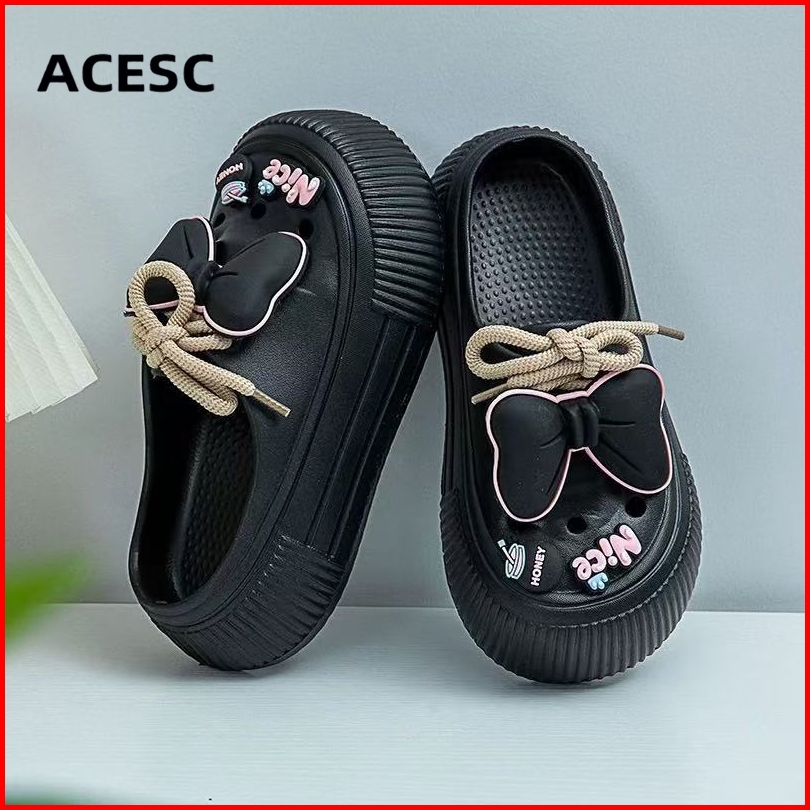 Acesc Sandal Slop Wanita Kekinian Sandal Kodok Wanita Sandal Fuji Sandal Baim Tali Pengikat Wedges Anti-selip