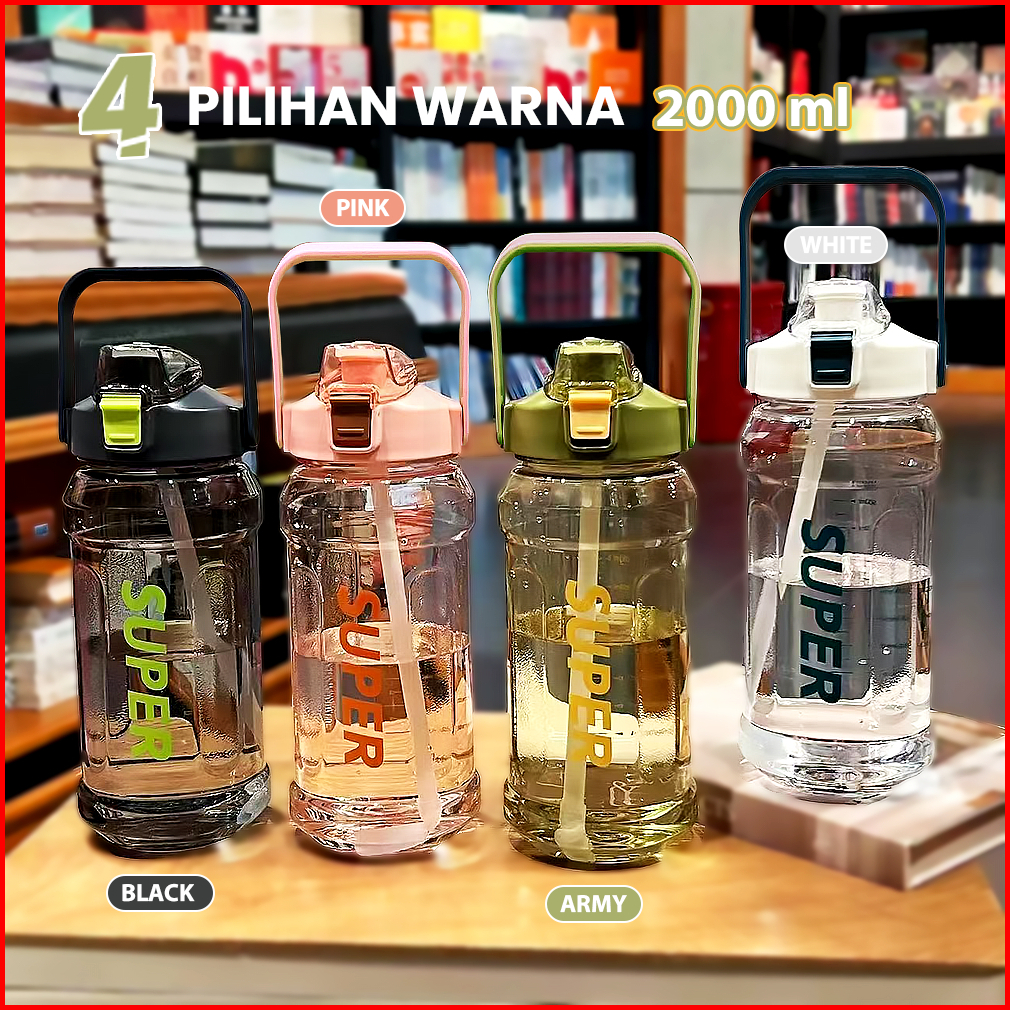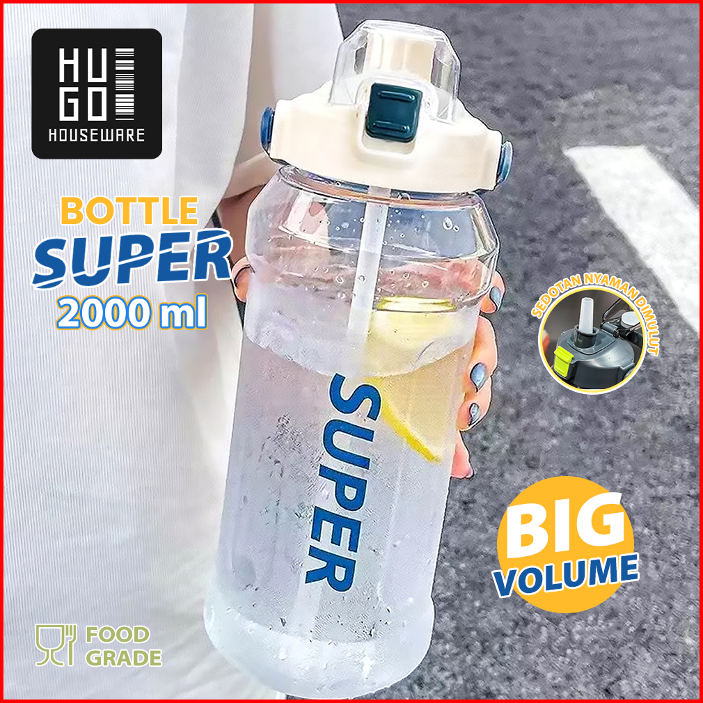 Hugo Botol Minum 2 Liter Jumbo Besar Anti Bocor Food Grade Tempat Air Minum 2000 Ml Bpa Free
