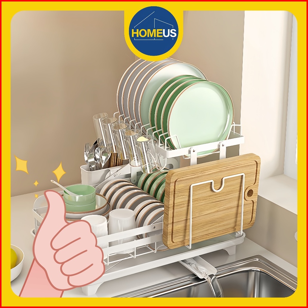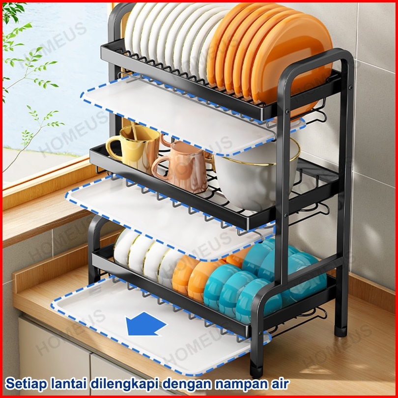Homeus Rak Piring Rak Cuci Piring Penyimpanan Dapur Stainless Steel Muat Mangkuk Dan Piring