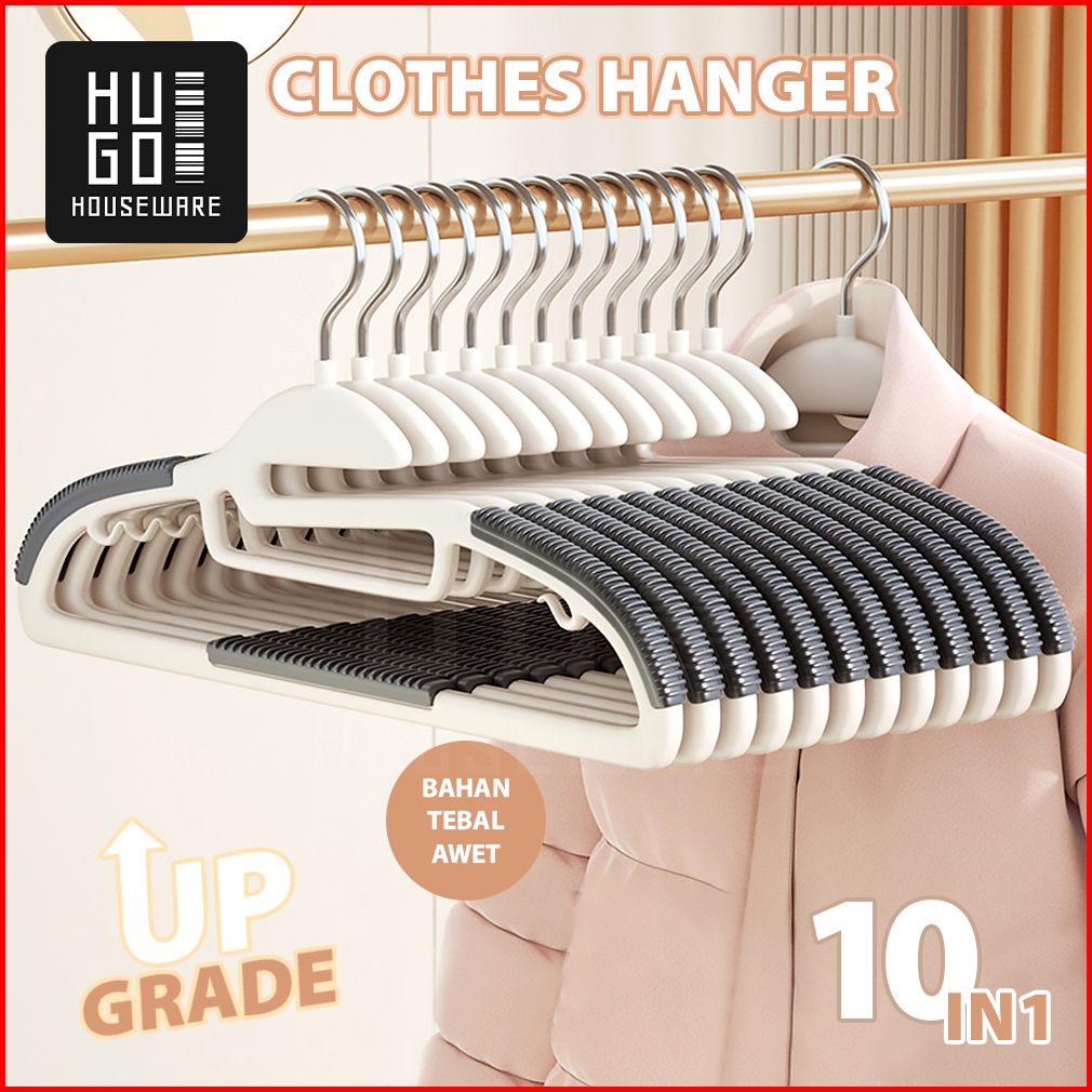 Hugo Hanger Gantungan Baju Dewasa Gantungan Baju Anti Slip Isi 10 Pcs Set Hanger Dengan Karet Bahan Tebal