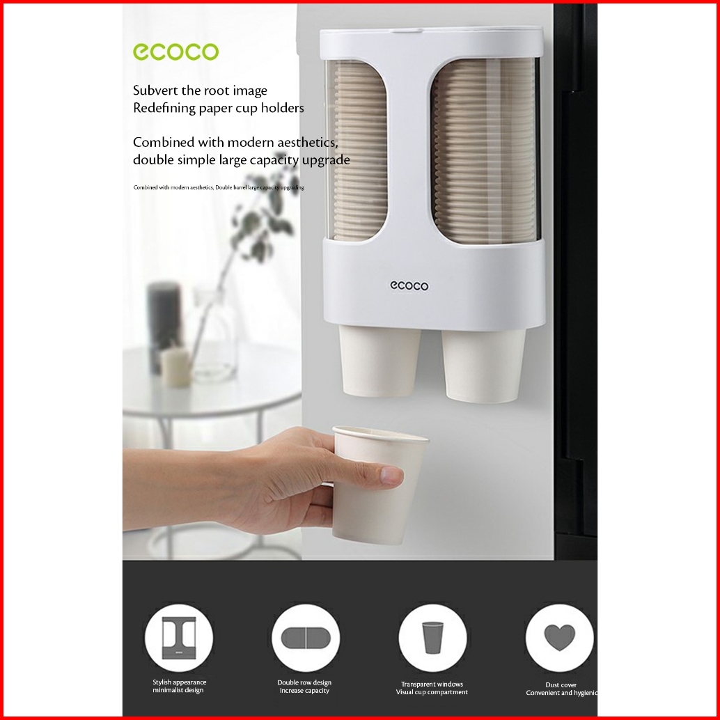 Ecoco Wall-mounted Paper Cup Holder - Wadah Cup Gelas Mudah Digunakan Modern Simpel Estetik