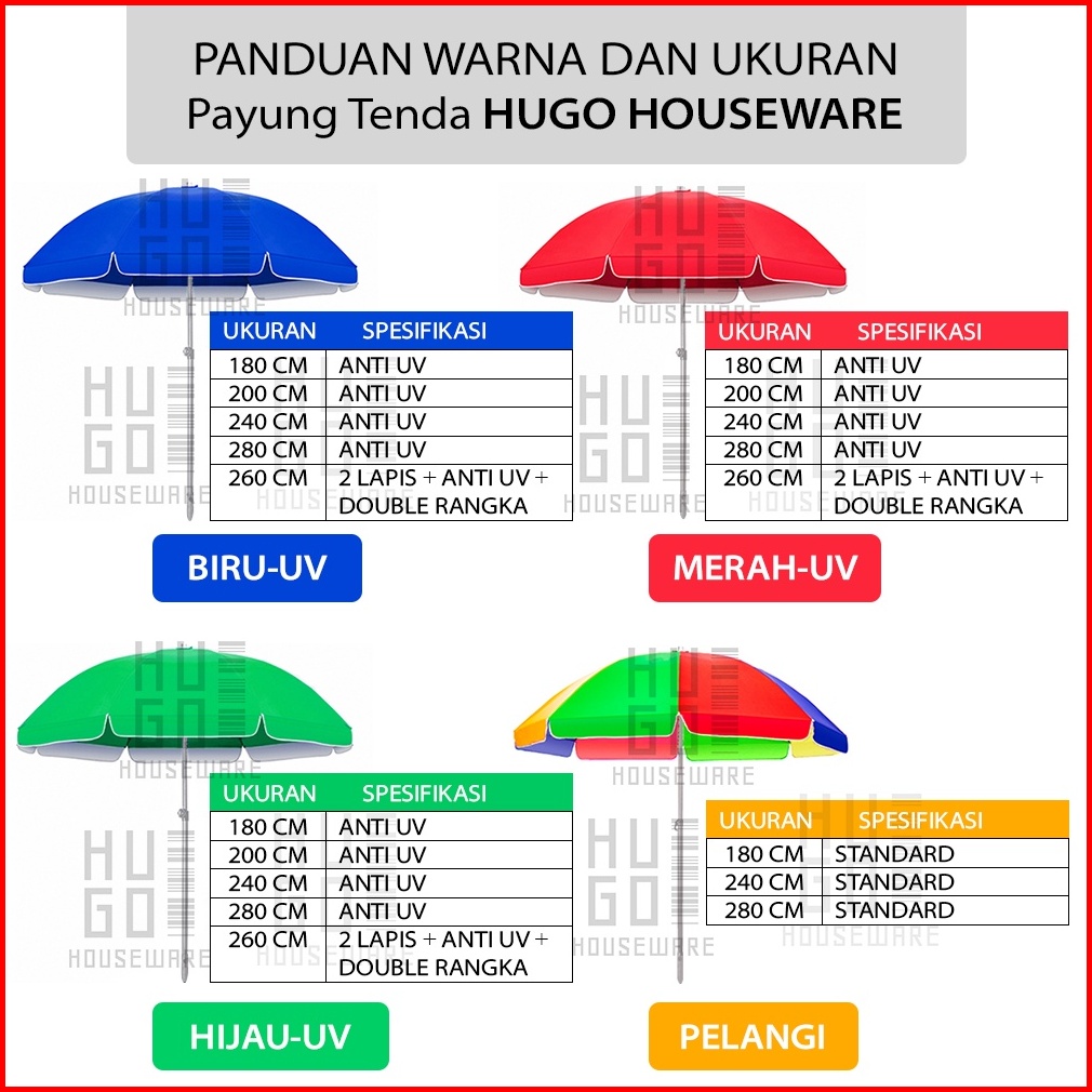 Hugohouseware Payung Tenda 200 Cm Jualan Taman Pantai Cafe Bazar Lapak