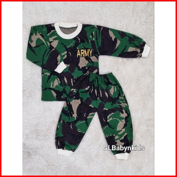 Setelan Piyama Panjang Oblong Anak Cowok Laki Laki Army Tentara Loreng Malvinas 1 Thn-12 Thn Sni