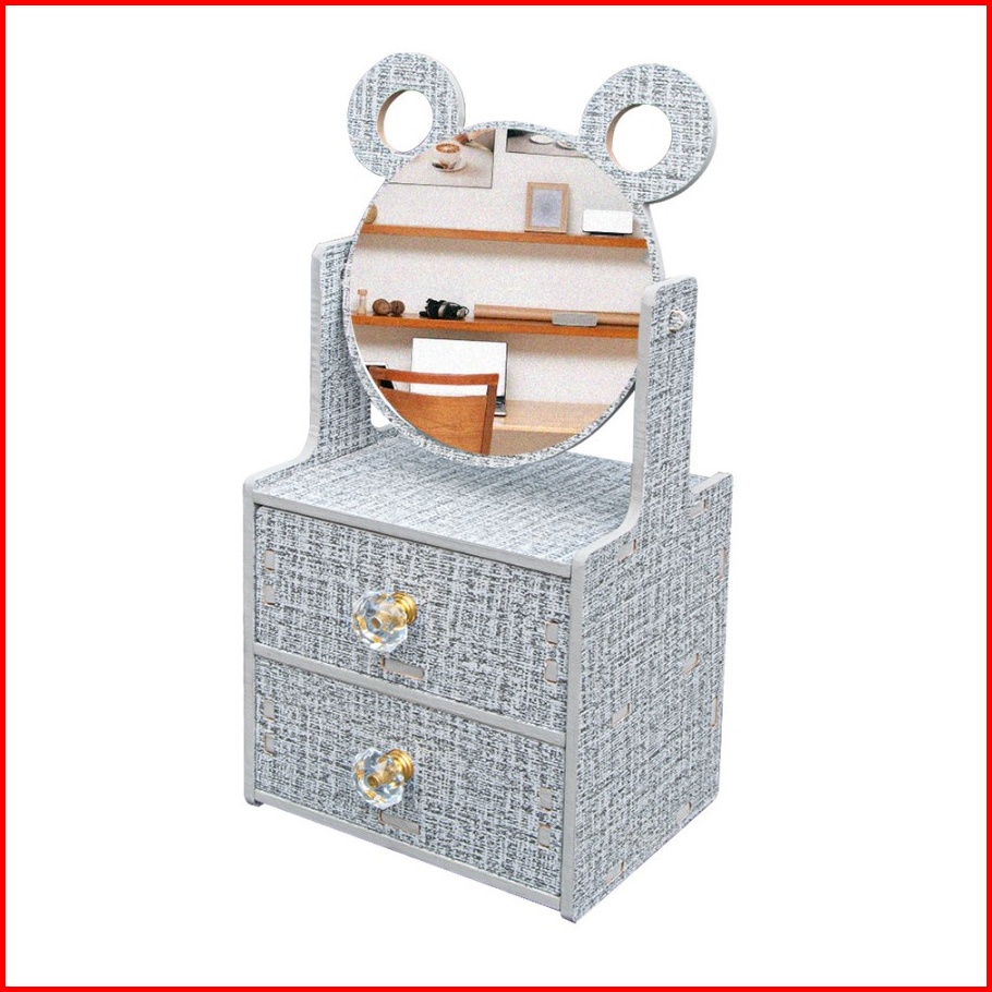Rak Kosmetik Kayu Kotak Tempat Makeup Skincare 2 Laci Ds023 Tahan Air Bonus Cermin