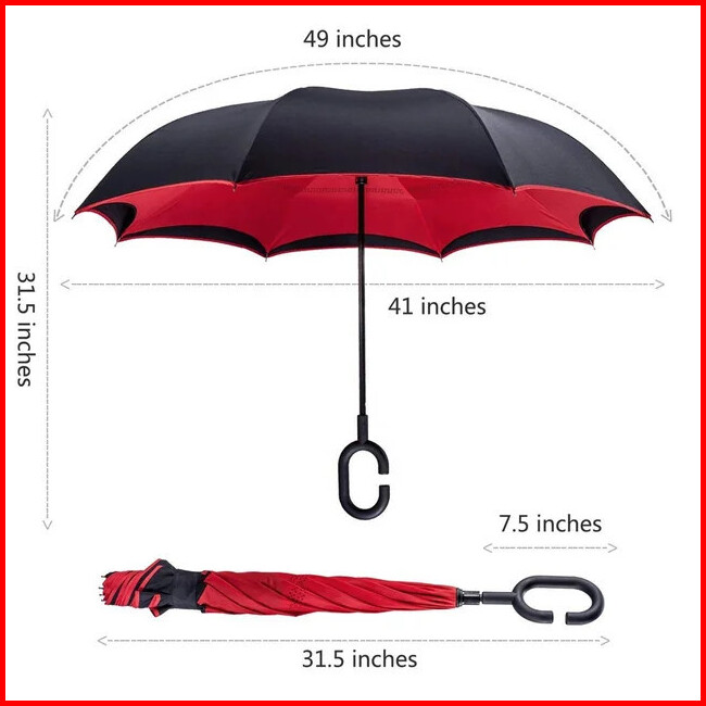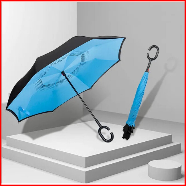 Payung Terbalik Kazbrella Reverse Umbrella Mobil Besar Gagang C 2 Lapis Anti Uv Tahan Hujan Panas