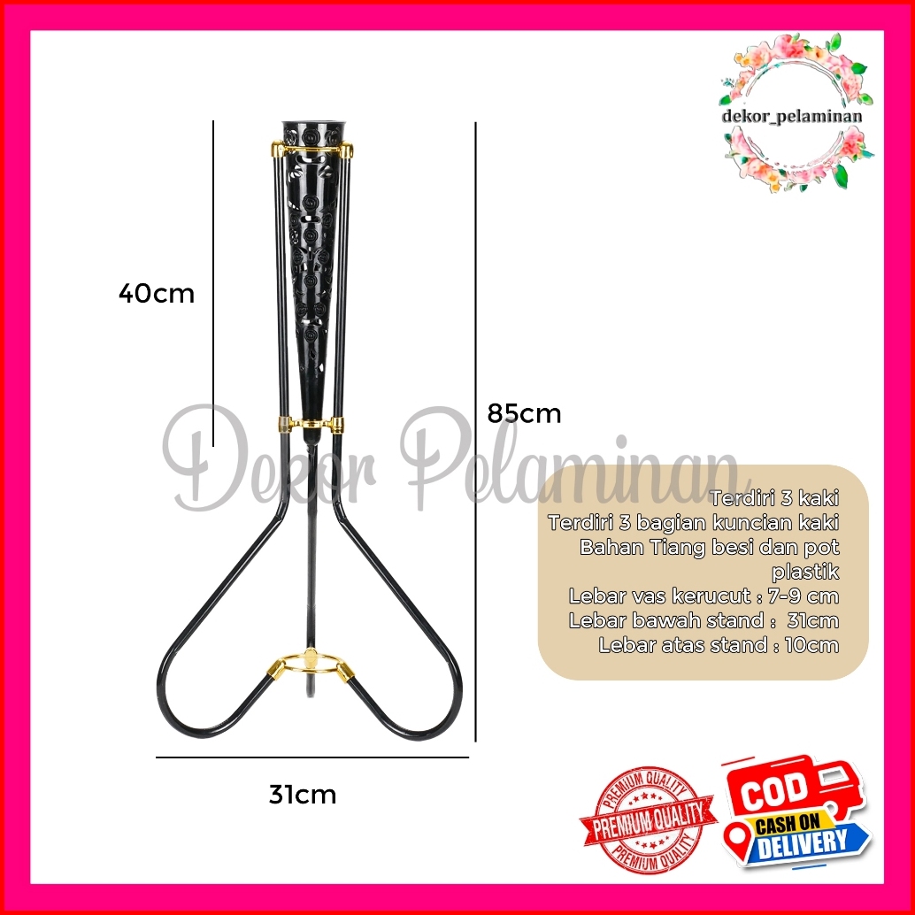 Vas Bunga Segitiga Sudut Ruangan Pot Kerucut Kaki Besi Import Standing Corong Hiasan Rumah Decor Home Dekorasi Wedding P