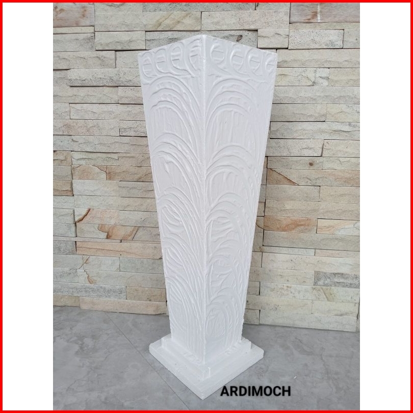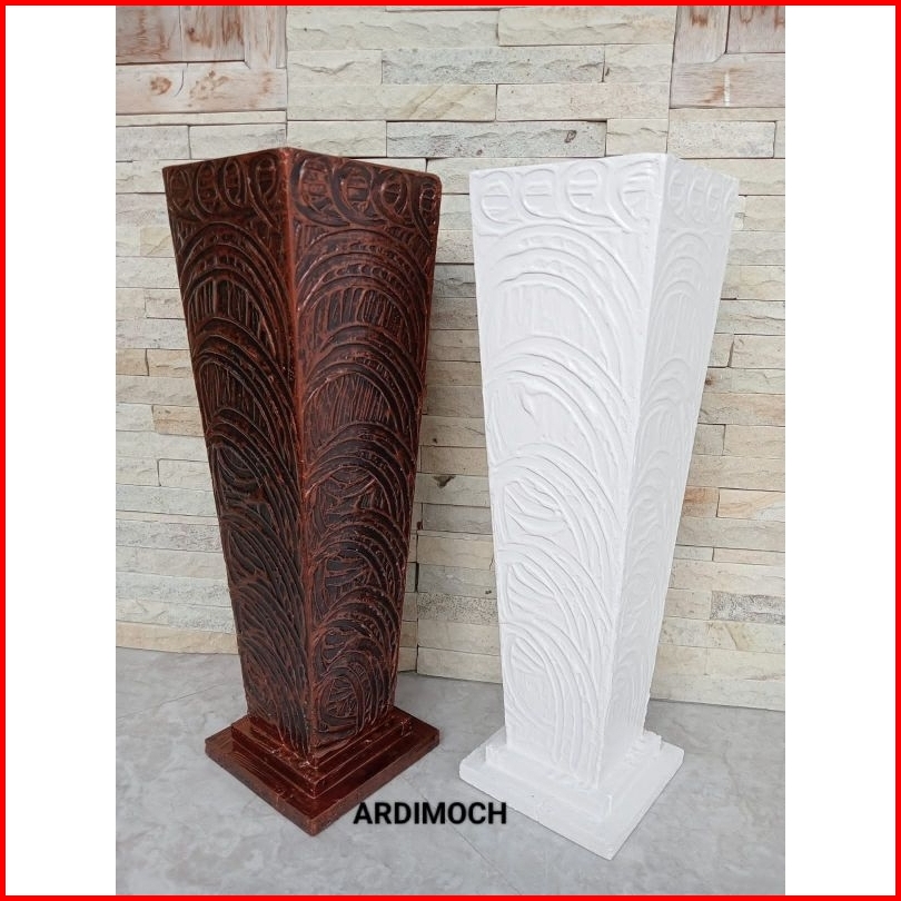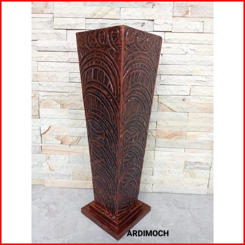 Vas Kayu Tinggi 50 Cm Ukiran Semen Aesthetic