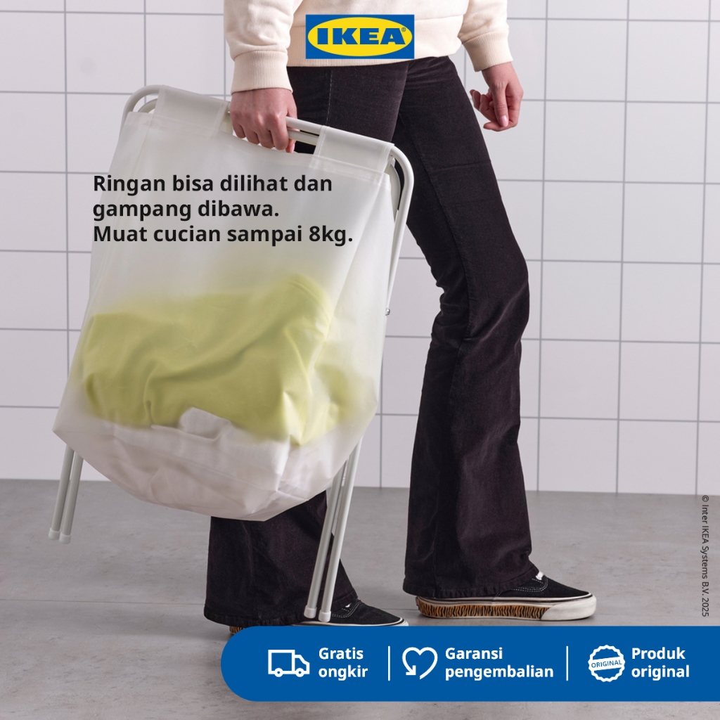 IKEA JALL Tempat Cucian / Keranjang Pakaian Kotor Dengan Stand Putih 50L