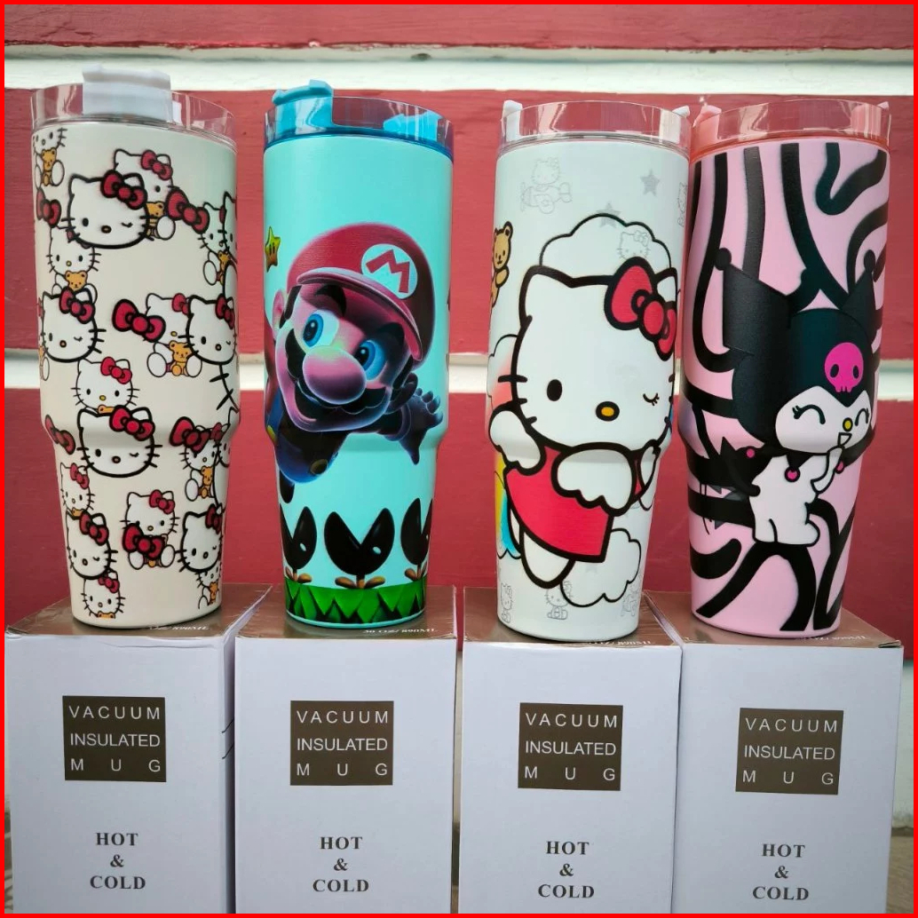 Tumbler Minum Stainless Steel Aneka Karakter I Tumbler Minum Tutup Transparan Putar Sedot I Sus 304 I 890ml I Hn-4018