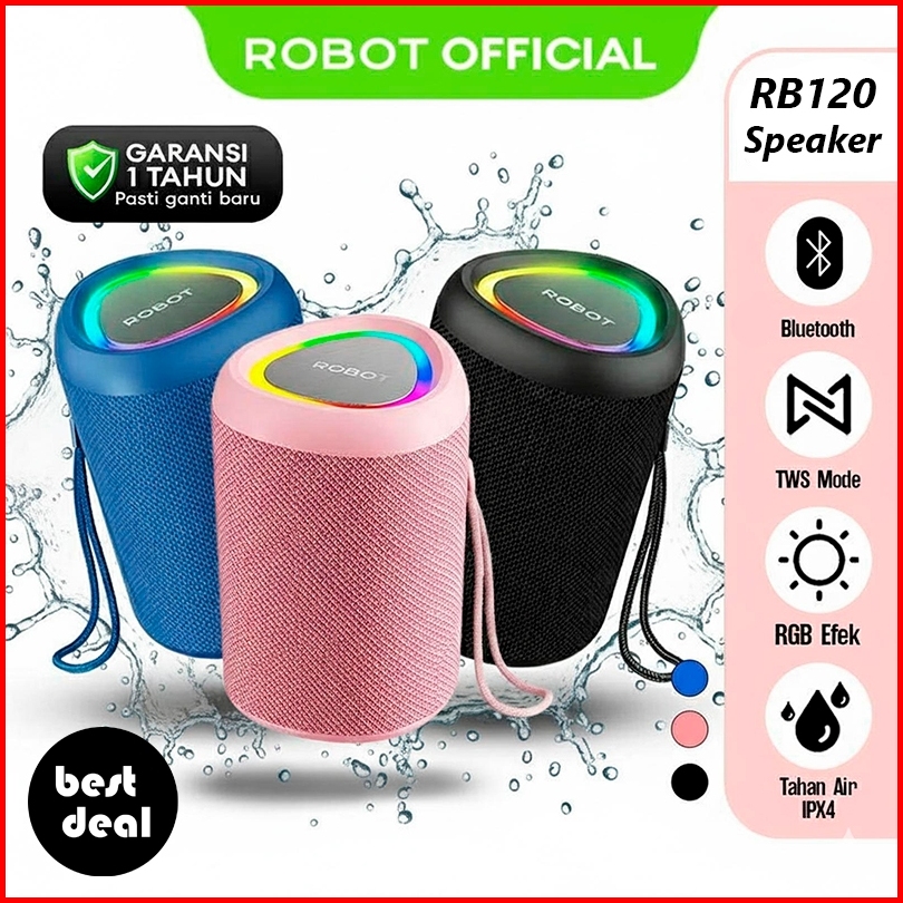 Robot Rb120 Portable Speaker Bluetooth 5.3 Rgb Waterproof Ipx4 Tws Original- Garansi Resmi 1 Tahun