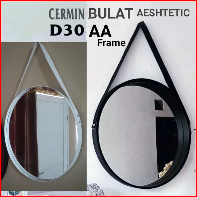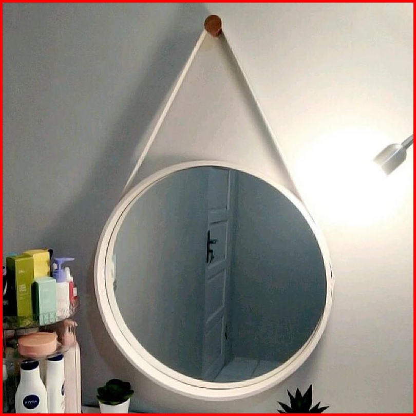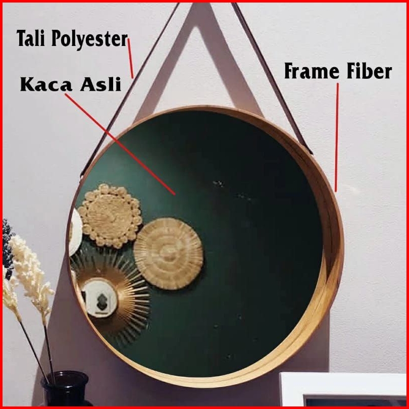 Free Packing Kayu Cermin Bulat Aesthetic Kaca Cermin Frameless Gantung Tali