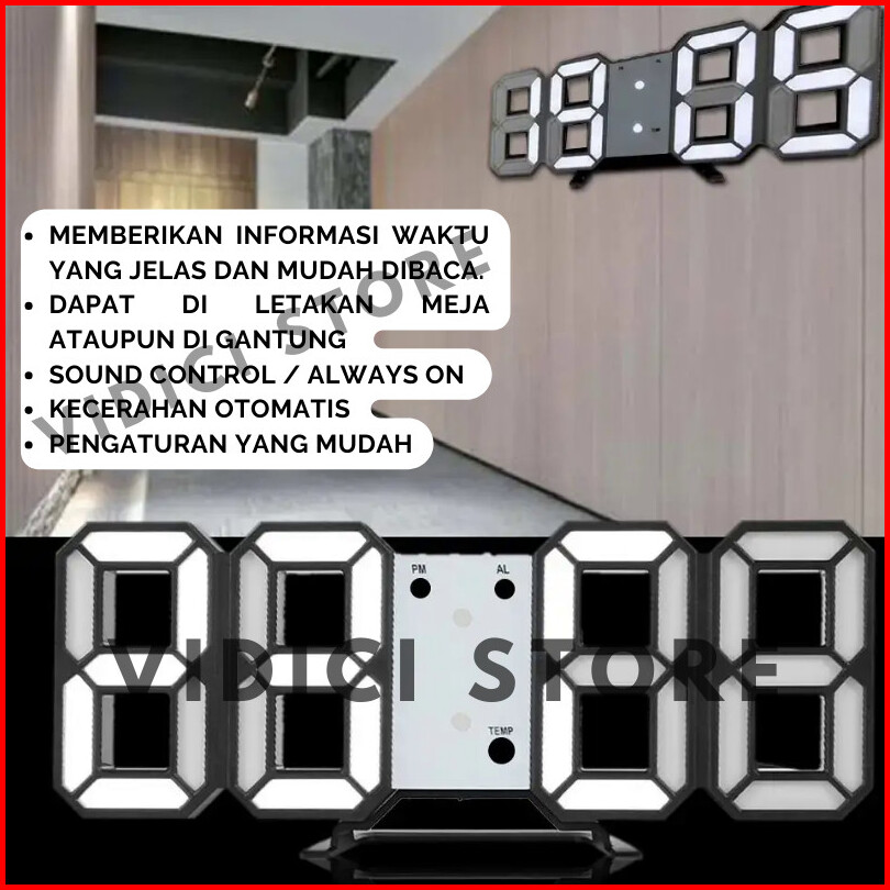 Jam Meja Dinding Digital 3d Led Clock Bentuk Angka Modern Minimalis Jam Dinding Digital Led
