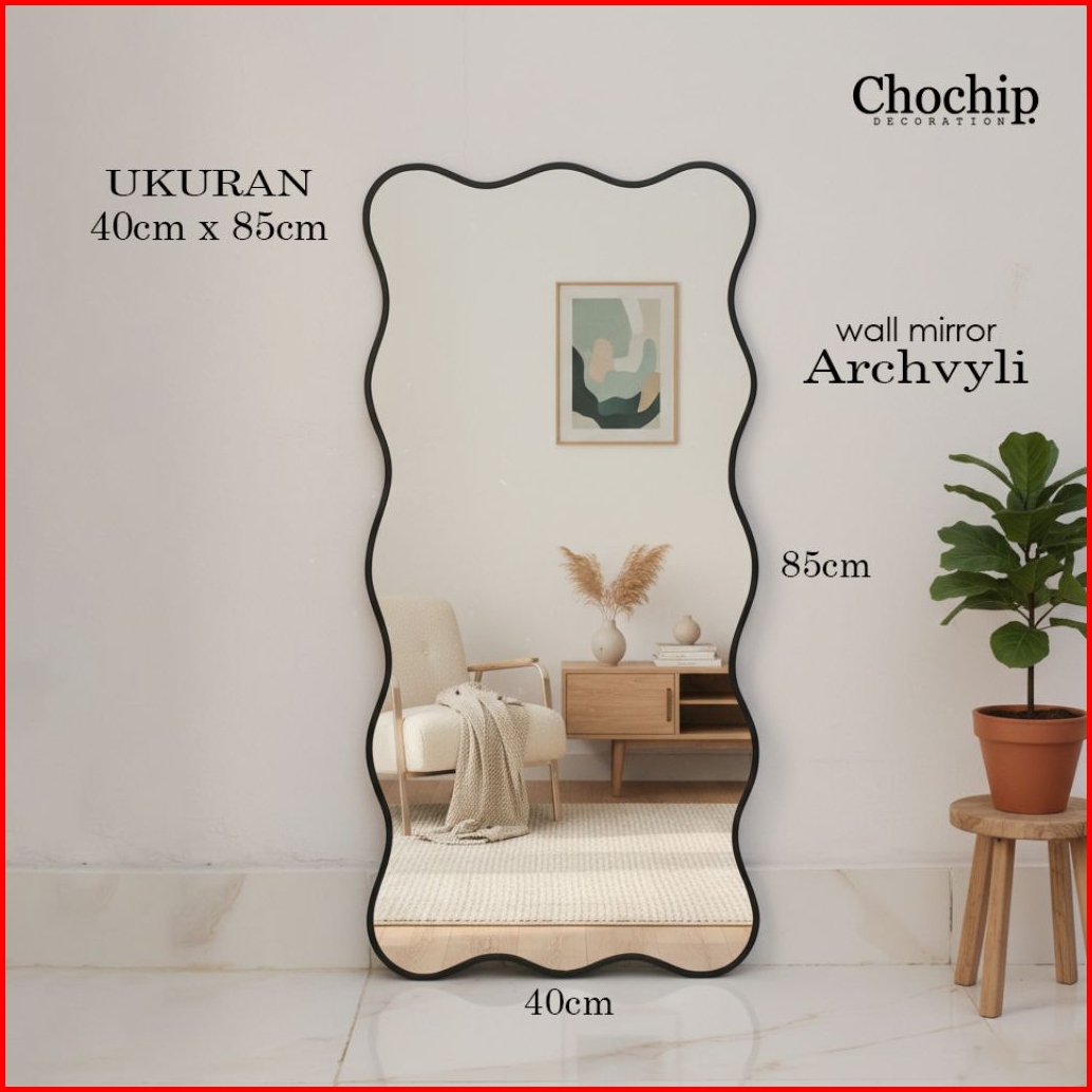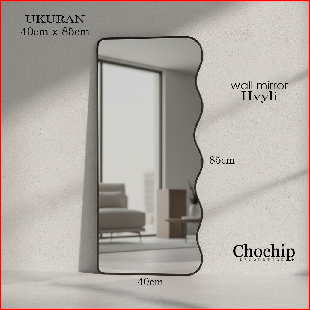 Cermin Dinding Aesthetic Cermin Gantung Motif Wavy 40cm X 85cm