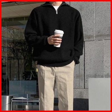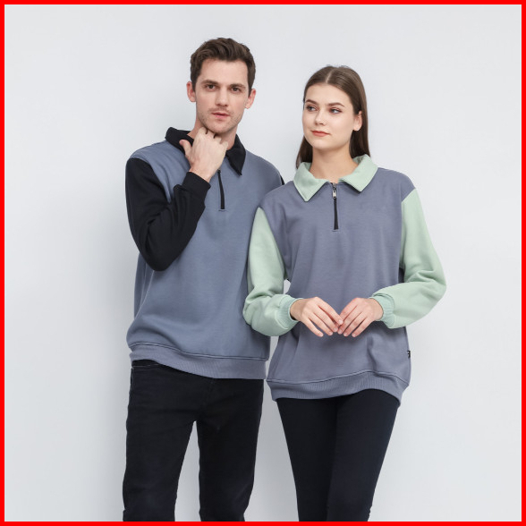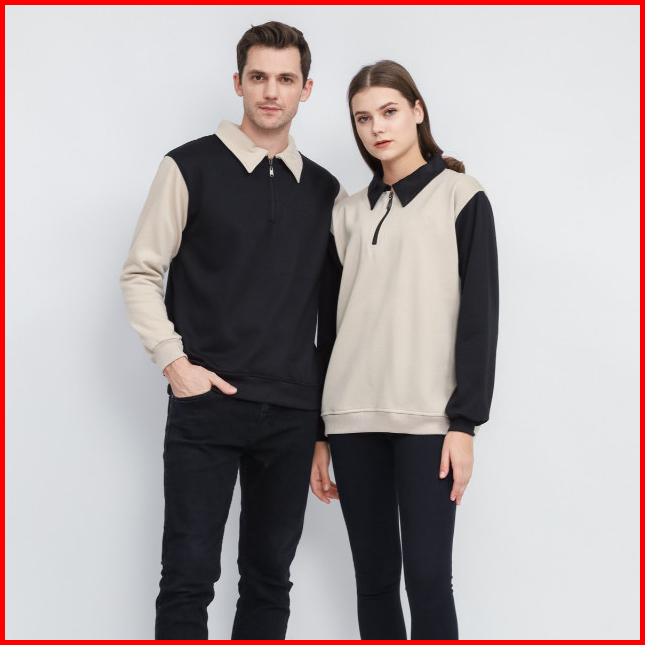 Outwear Sweater Polos Half Zip High Neck Premium Tebal Pria Wanita Sweatshirt Zipper Motif Terbaru