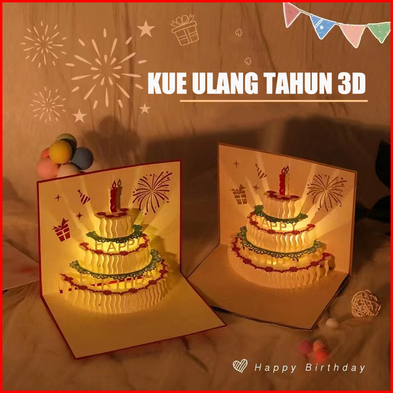 Kartu Ucapan Pop Up Kue Ulang Tahun 3d Dengan Lampu Musik