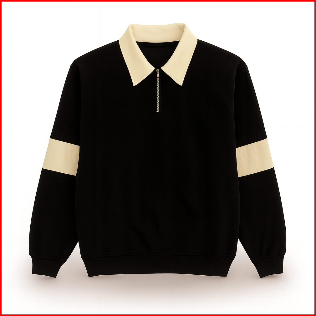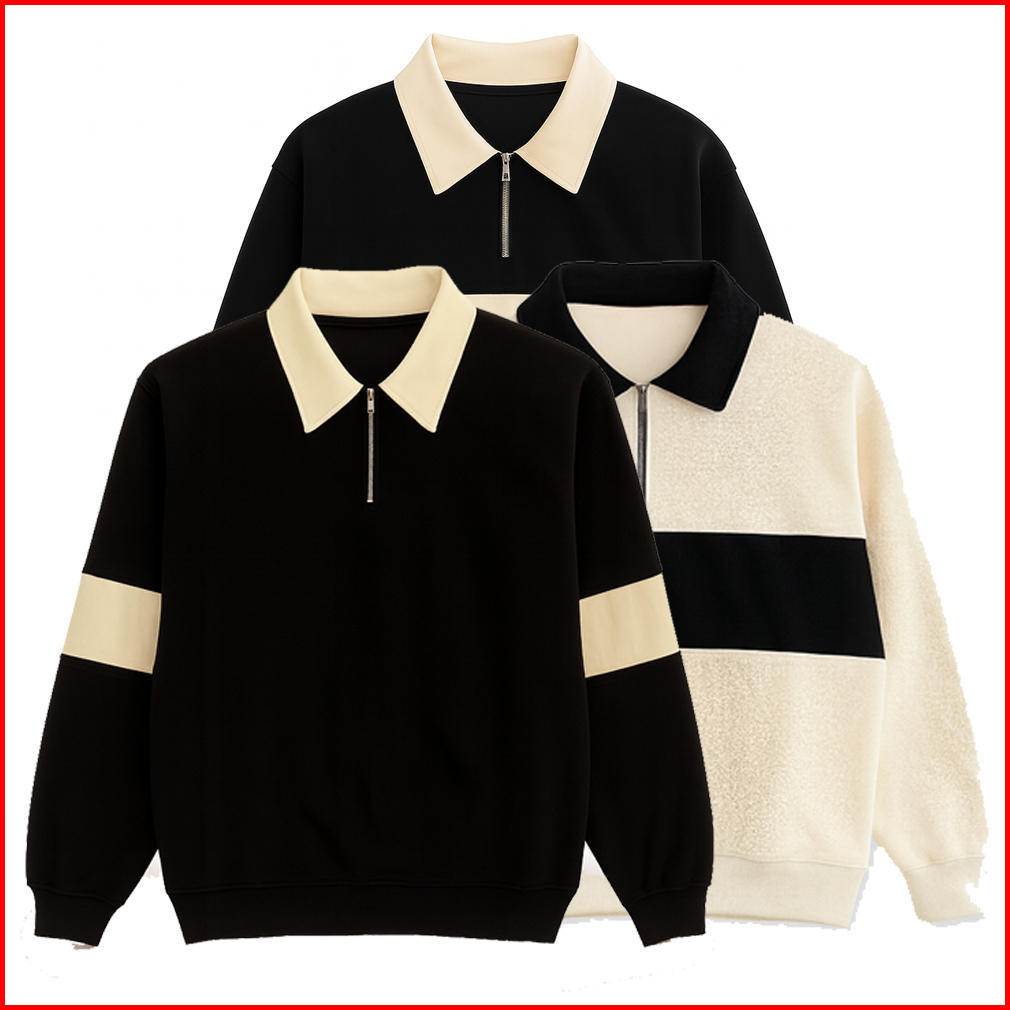 Rugby Half Zipper Twotone Crewneck Jaket Sweater Pria Wanita