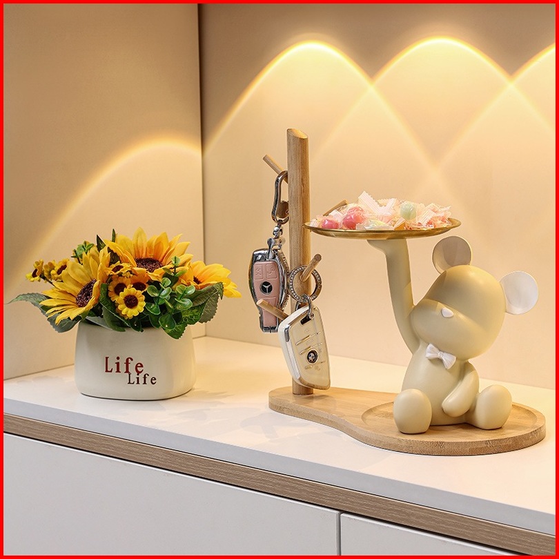 Eyre Meja Nordic Bear Nampan Penyimpanan Kreatif Patung-patung Ornamen Ruang Tamu Teras Meja Rumah Resin Dekorasi Kunci
