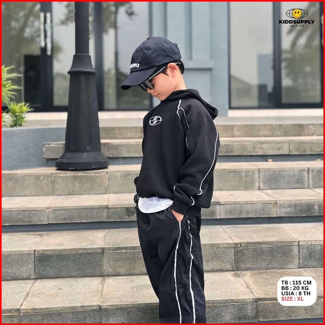 Kiddsupply Hoodie Boxy List Anak Neocore Embroidery Black Dark Brown Hoodie Boxyfit Anak Kd-hd-bx-list-kse