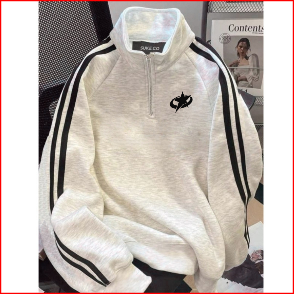 Half Zip Sweatshirt Star Saturn Two Stripe Basic Sweater Crewneck Pria Abu Misty Premium
