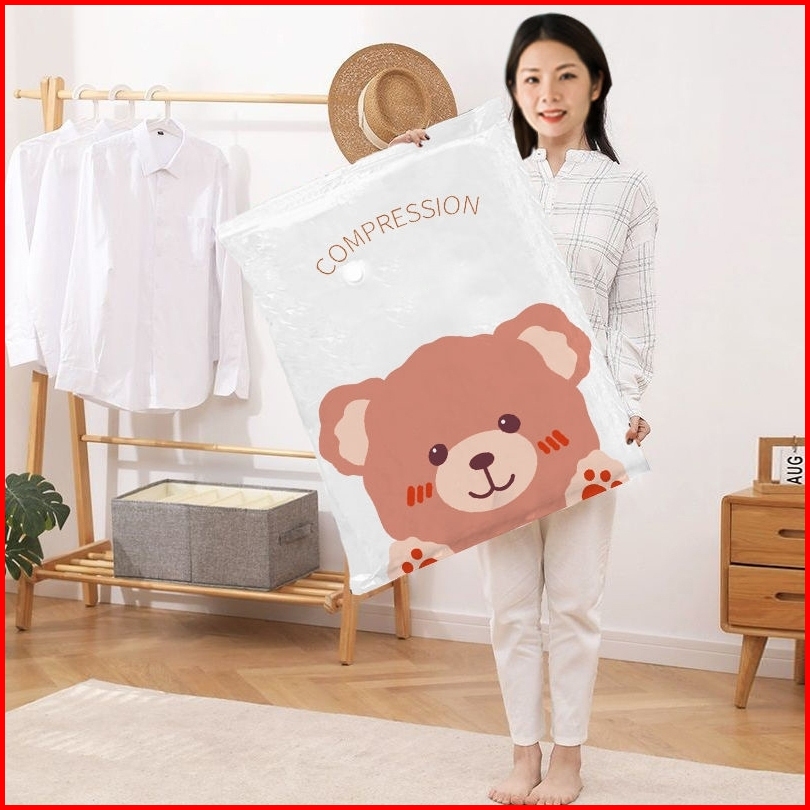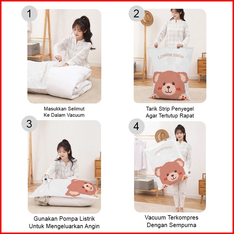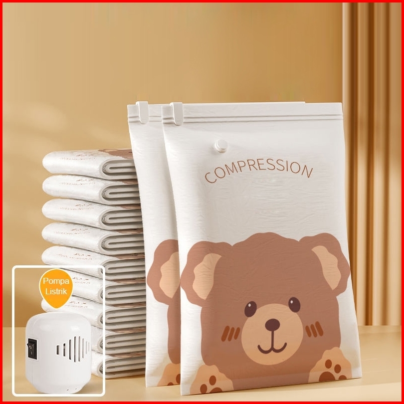 U-living Set 4pcs Plastik Vacuum Dan Pompa Elektrik Vacuum Teddy Bear Kantong Pakaian Travel Anti-air Dipakai Berulang P