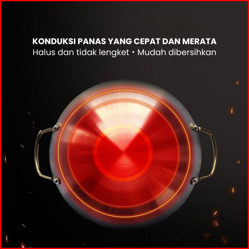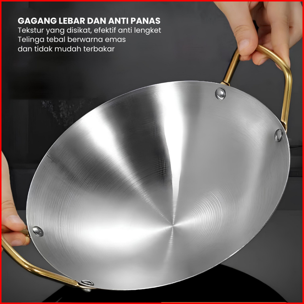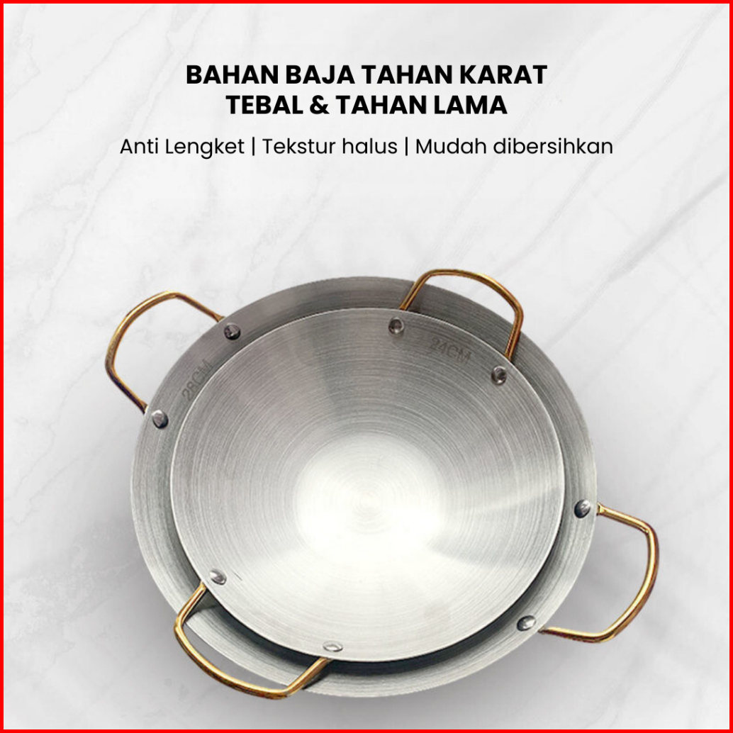 Funnycook Wajan Kuali Stainless Steel Tebal Anti Karat Anti Lengket Gagang 22cm 24cm 28cm