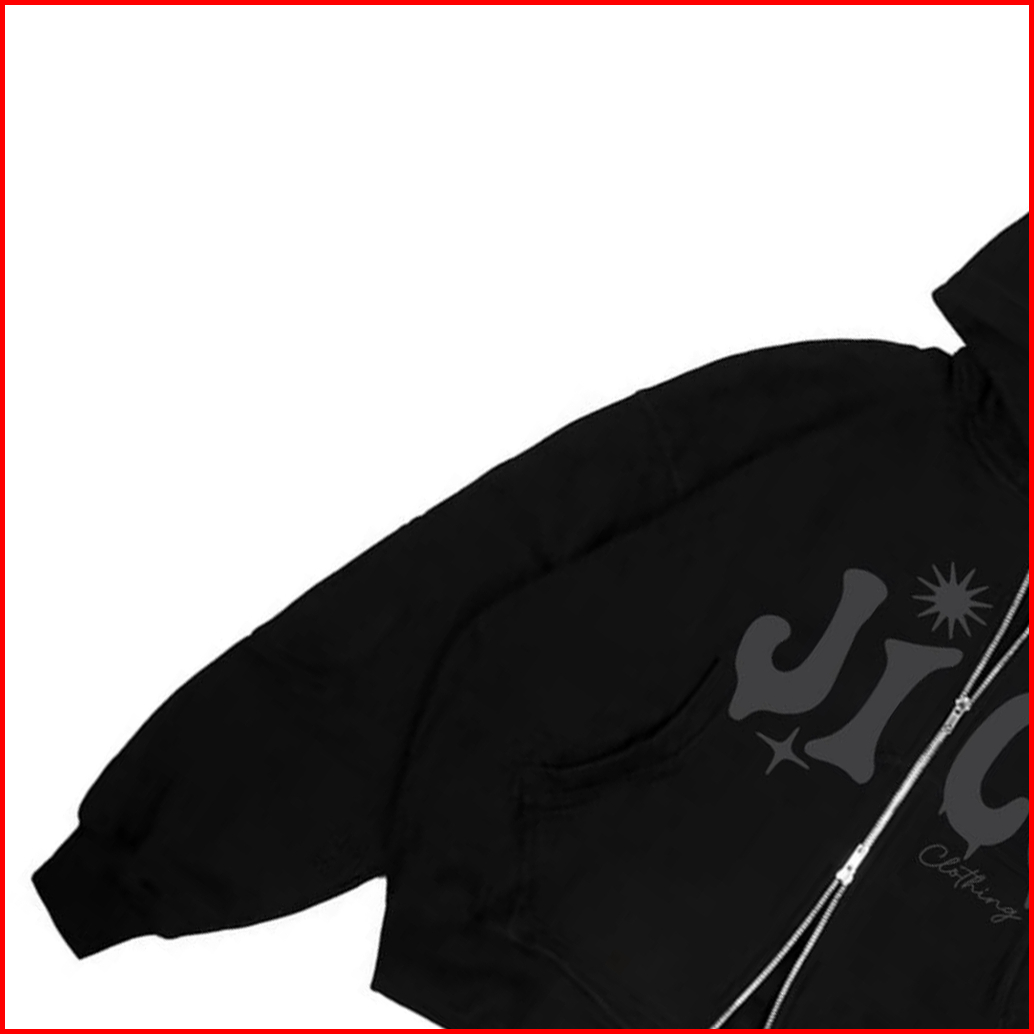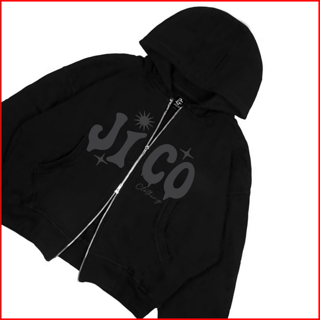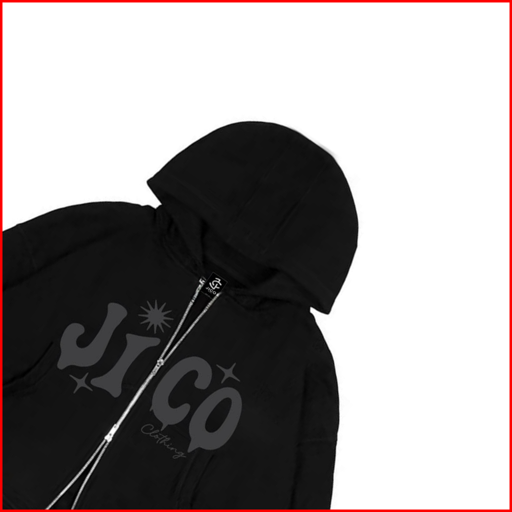 Jico - Sweater Hoodie Boxy Zipper Double Zip Oversize Sablon Abu Jc Clothing Warna Hitam