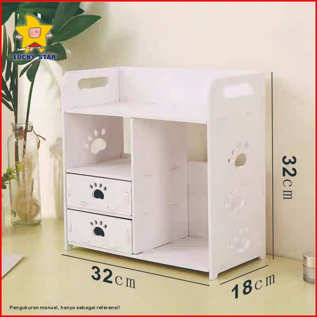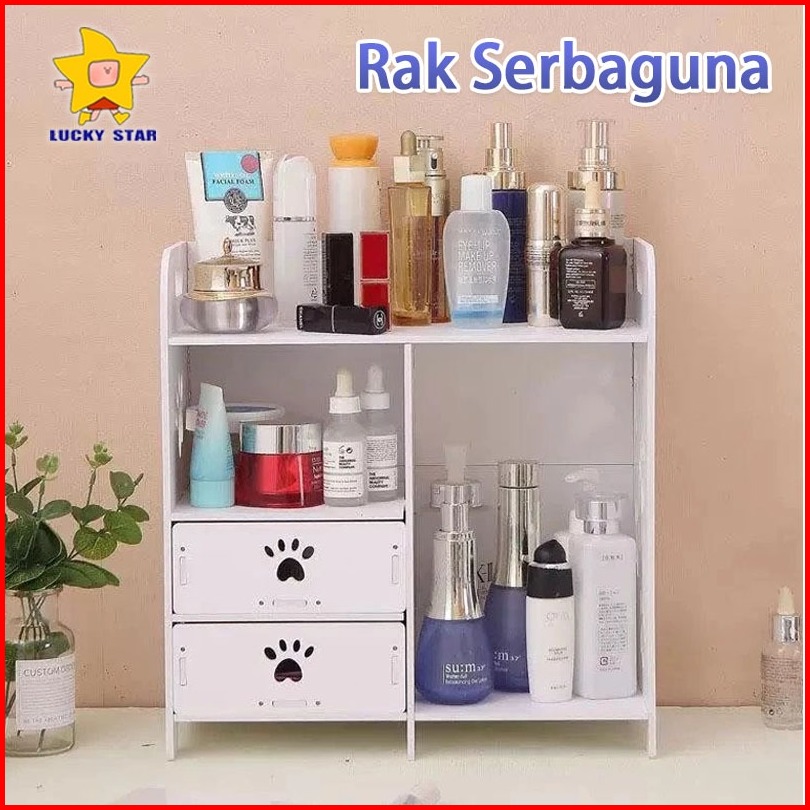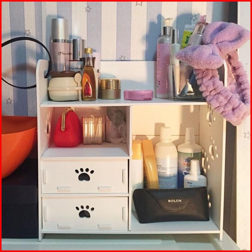 Rak Kosmetik Kayu Kotak Wpc Tempat Makeup Tahan Double Drawer Cosmetic Storage