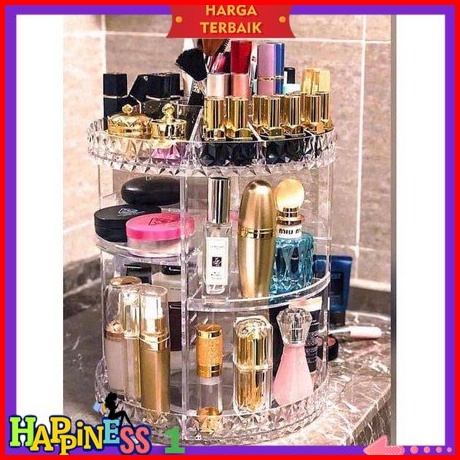 Rak Kosmetik Acrylic Putar 360 Derajat Diamond Polos Rak Make Up Organizer Tempat Makeup Happiness