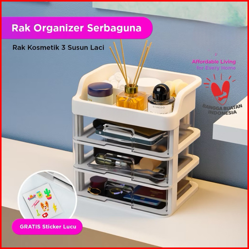 Aga Rak Kosmetik Susun 3 Laci Model Baru Multifungsi Tempat Penyimpanan Alat Makeup 3 Laci Serbaguna