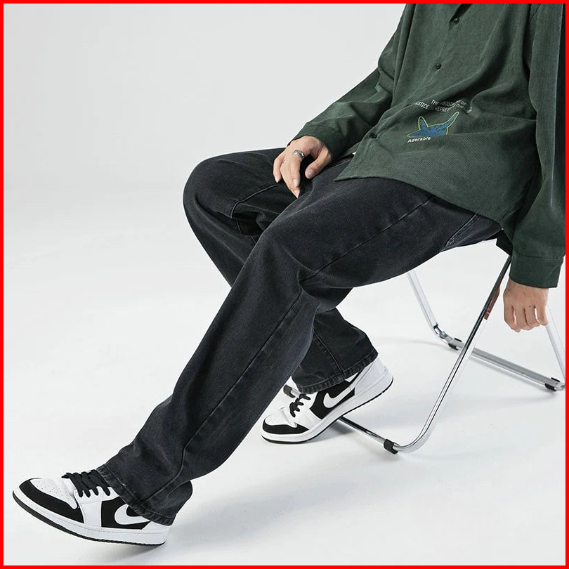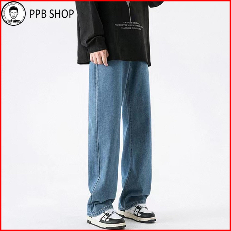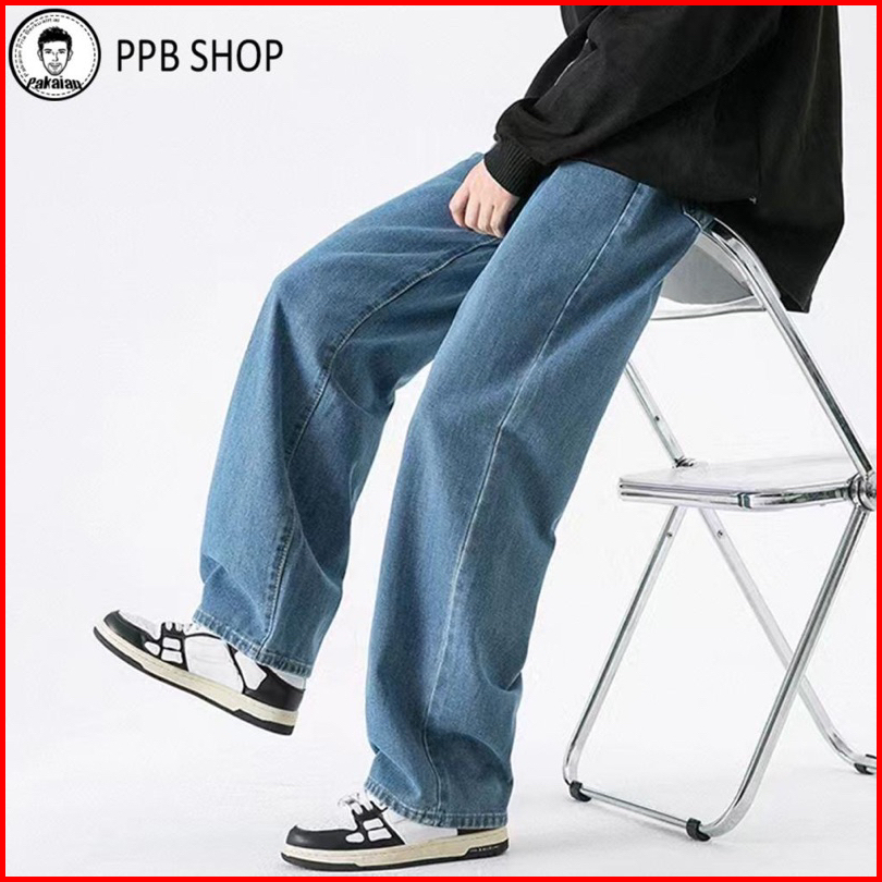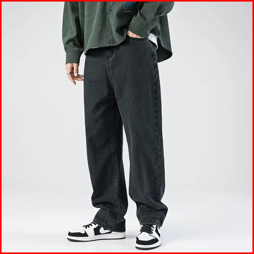 Rominsy - Celana Jeans Pria Standar Panjang Loose Pants Cowok Jumbo Denim Biru Hitam Kekinian