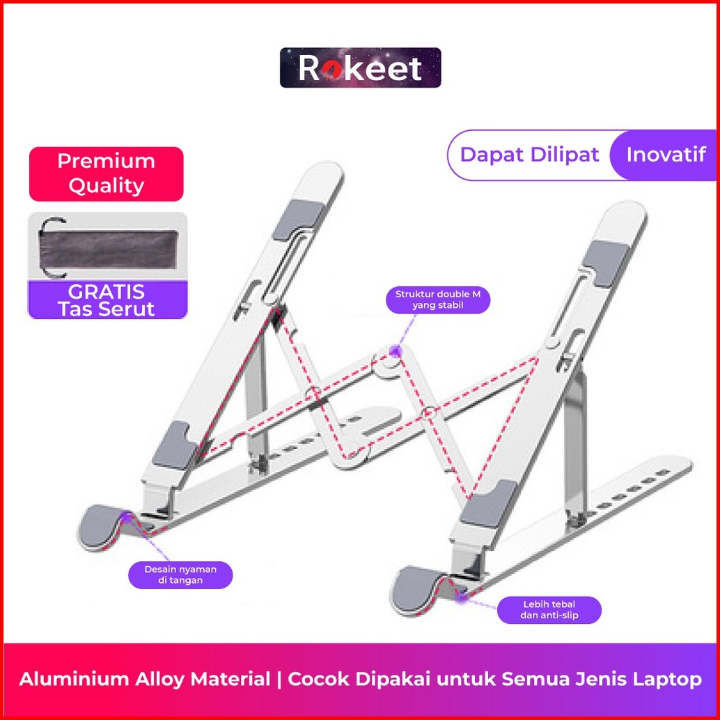 Rokeet Stand Holder Laptop Macbook Notebook Ipad Lipat Foldable Portable Ringan Anti Slip Ringan