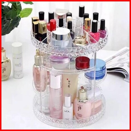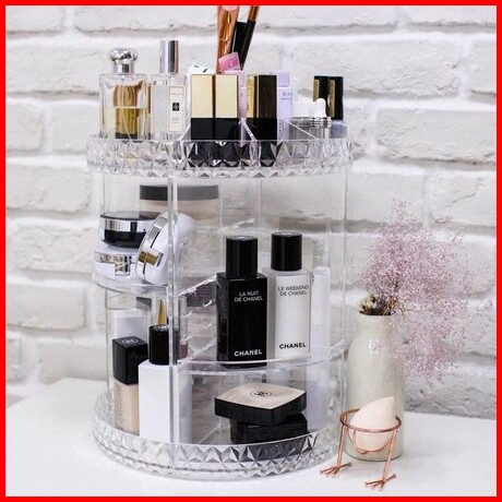 Rak Kosmetik Acrylic Putar 360 Derajat Diamond Polos Rak Make Up Organizer Tempat Makeup