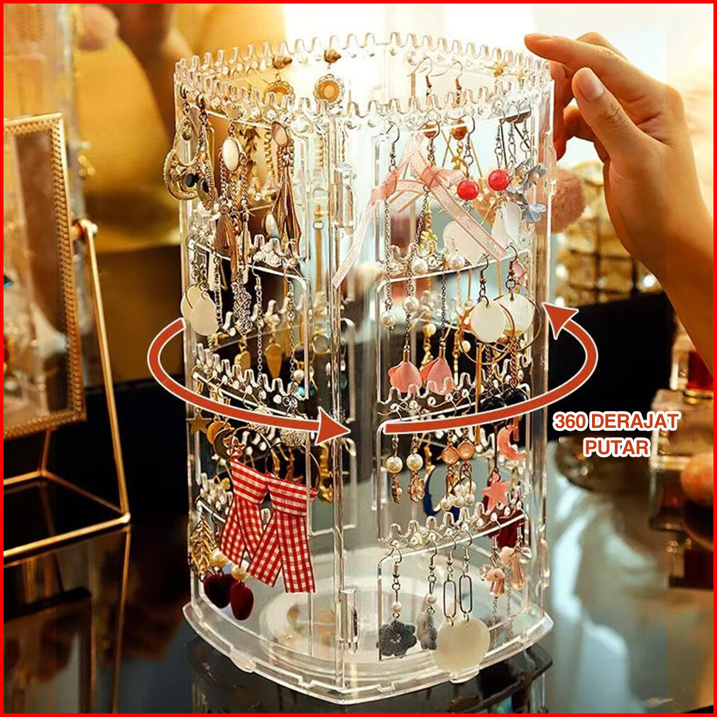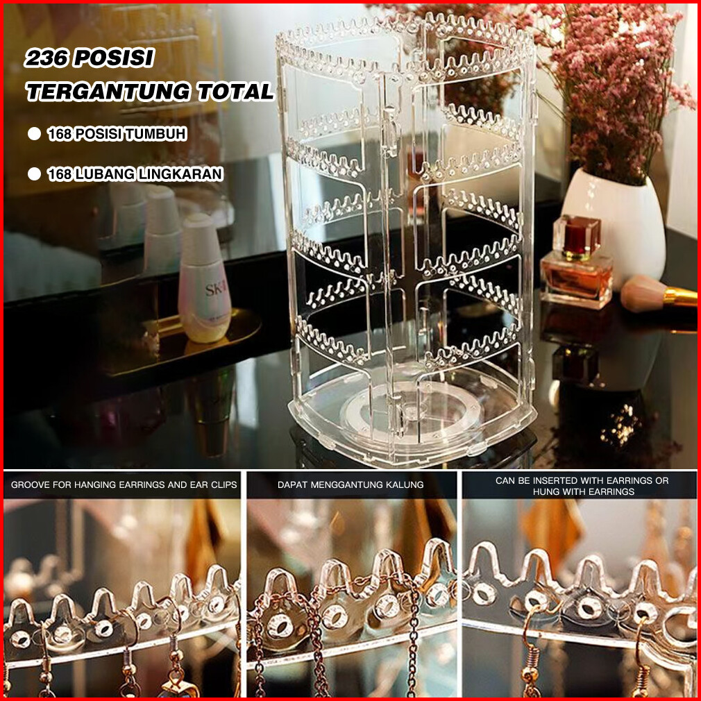 360 Derajat Rak Penyimpanan Kalung Anting Rak Penyimpanan Kalung Rak Organizer Impor