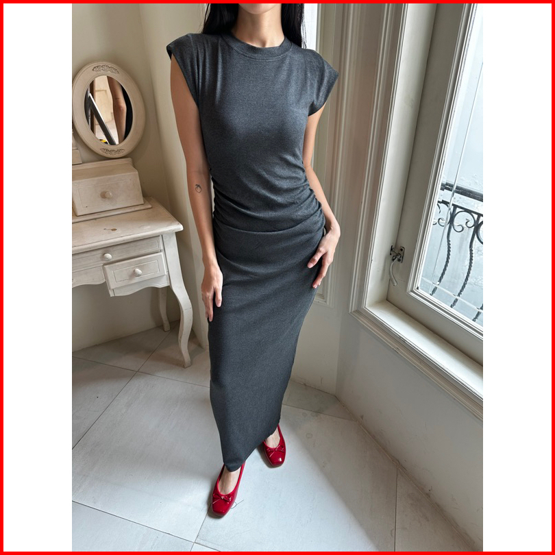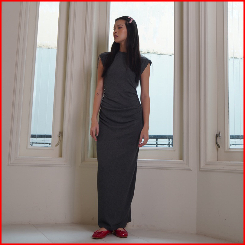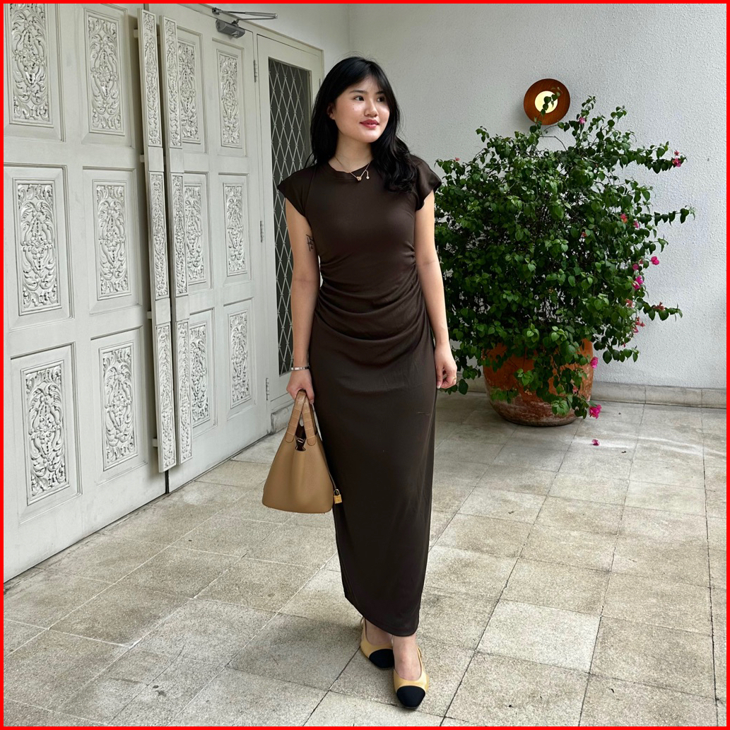 Chai Dress Lale Dress Basic Panjang Midi Wanita Rib Ribbed Knit Terusan Long Dress