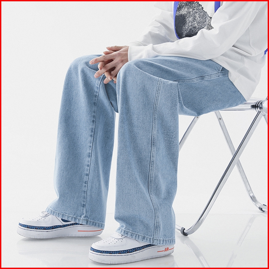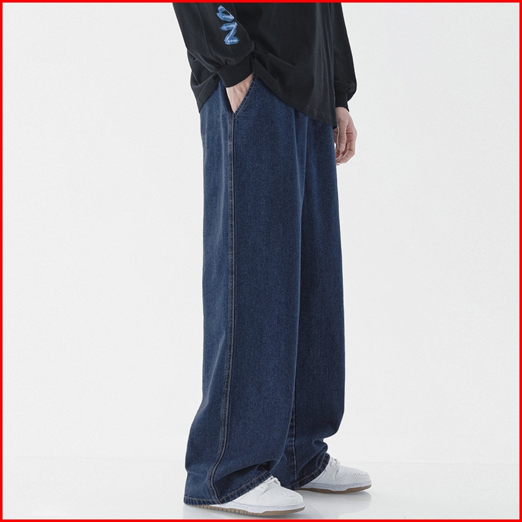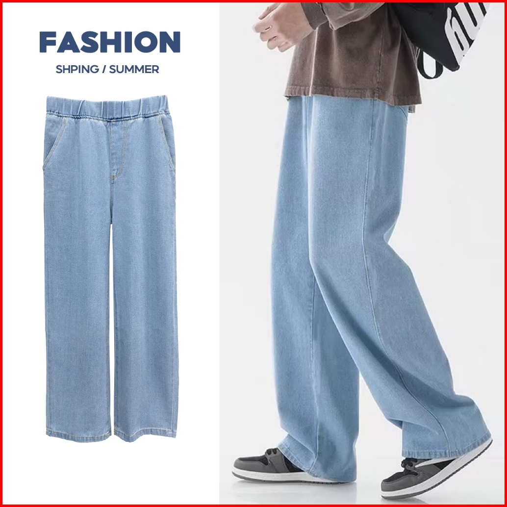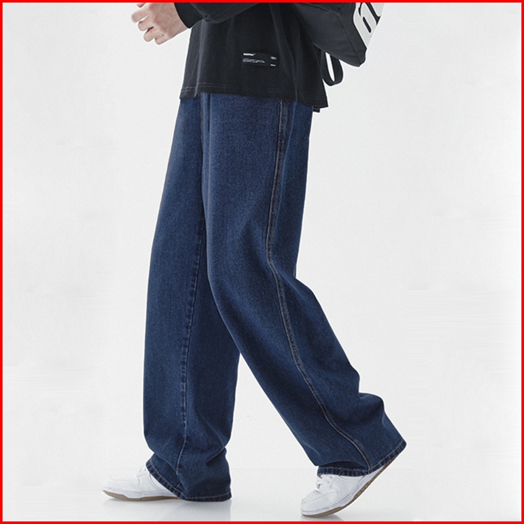 Celana Jeans Pria Korean Style Straight Cut Loose Plus Size Denim Elastic Waist Celana Panjang Jeans