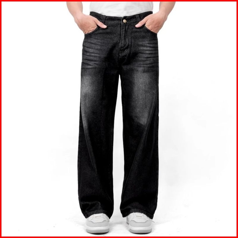 Celana Jeans Pria Wide Leg Washed Baggy Pants Korean Style Oversize Loose Straight Longgar Gombrang Komprang