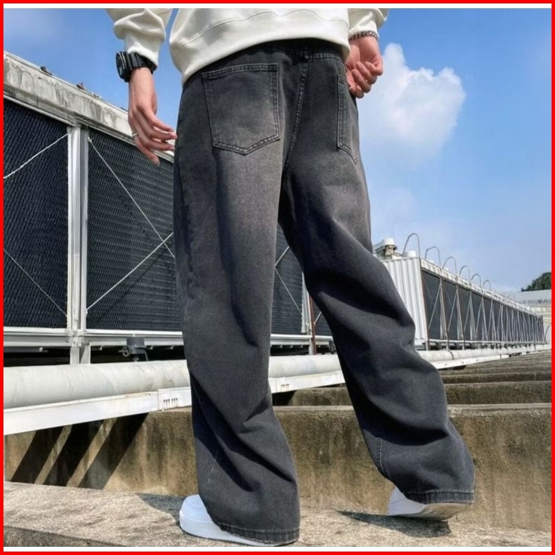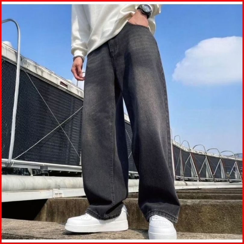 Celana Jeans Panjang Pria Loose Wisker Skena Baggy Hitam Retro Jeans Size 27 - 36 Reguler