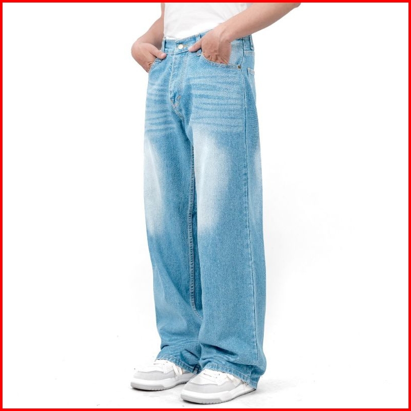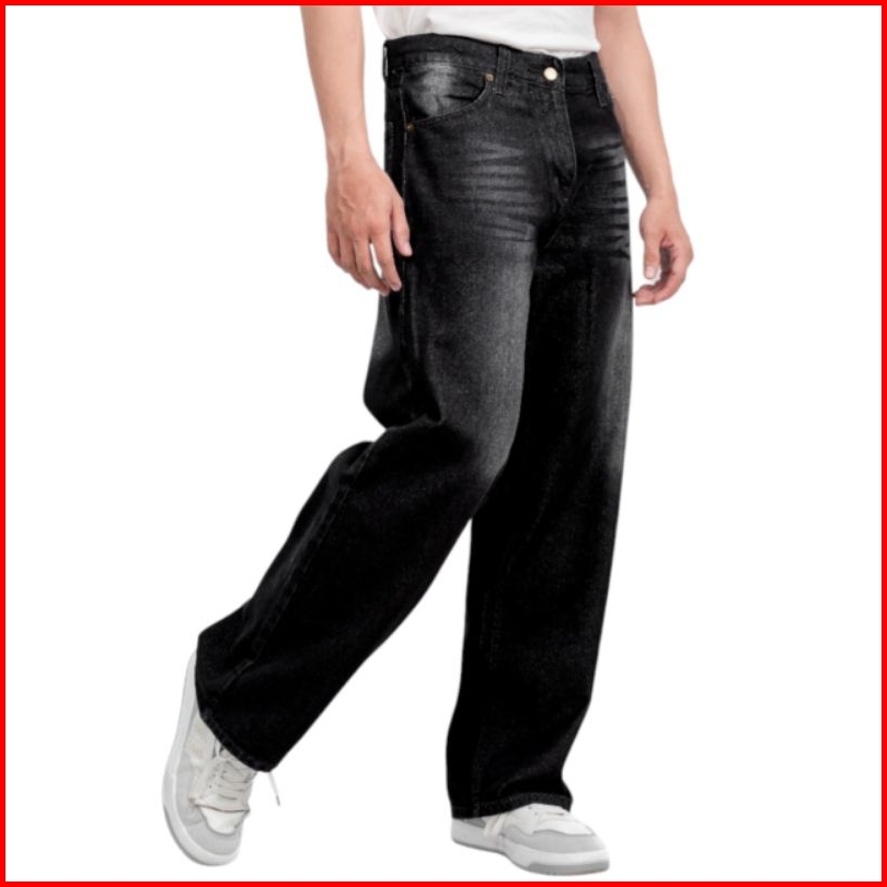 Celana Gombrong Pria Skena Jeans Cowok Panjang Wide Leg Wisker Gombrang Loose Pants Black Denim