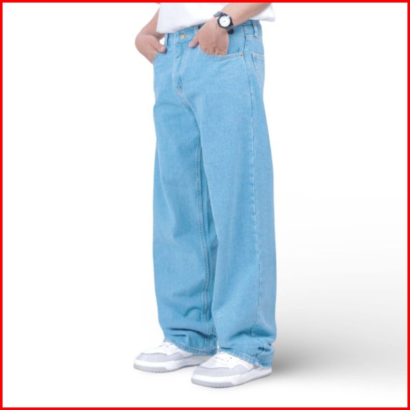 Celana Jeans Pria Baggy Pants Korean Style Oversize Loose Blue Jeans Straight Kulot Boyfriend